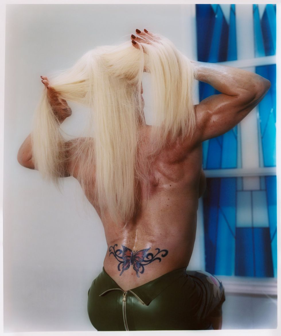 Barbella, Biel’s first solo exhibition, is a compilation of her musings on female bodybuilders over the last four years, which first caught her interest during a period of creative drought. In 2019, a friend of Biel’s mentioned her mom was a bodybuilder, and, after bridging the distance between Arizona and LA to shoot together, Biel's relationship with the female bodybuilding community was forged. At a time when Biel was struggling with the destructive effects of heartbreak, photographing these formidable women became a vital source of inspiration and empowerment for her. Rather than shrinking away from taking up space, as many women are compelled to do, her subjects reveled in the presumption of being “worshipped.” Biel notes: “Not a single one of them appeared to lack confidence... I see them as a physical encapsulation of self love.”