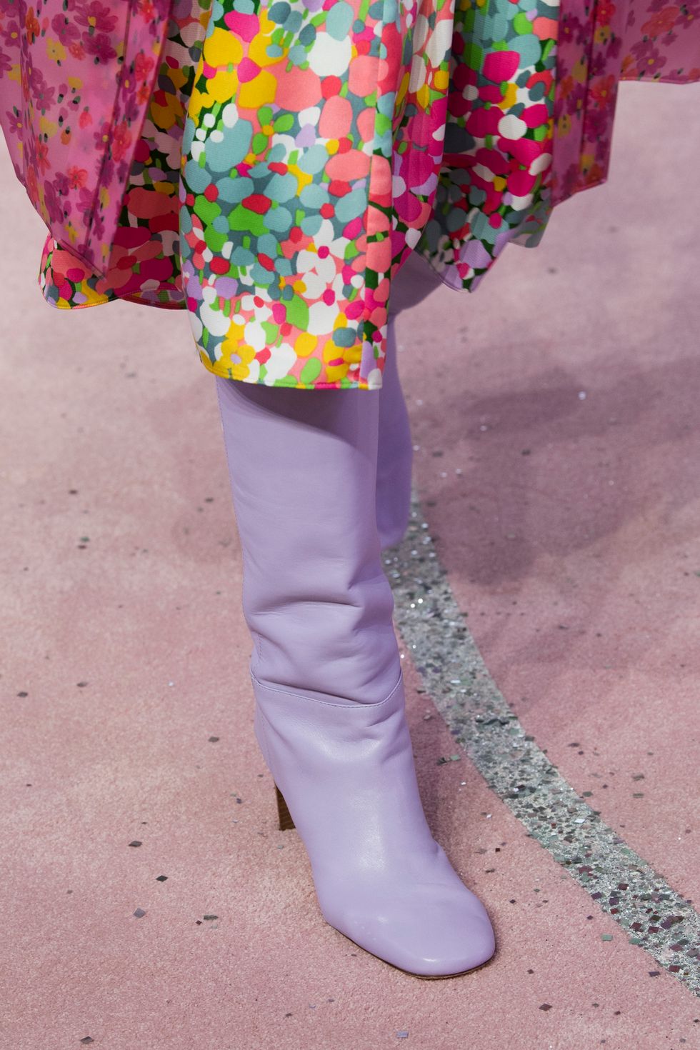 The color of the season at Kate Spade was lilac. It showed up in shoes, dresses and as accents throughout. We particularly flipped for the over-the-knee boots on Lineisy Montero.