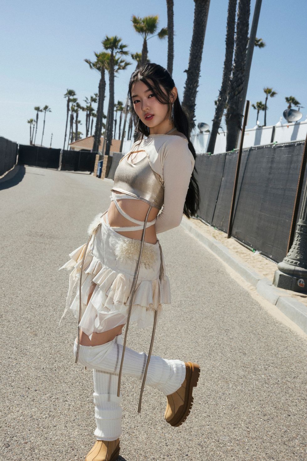 Now, with the drama of that process in the rearview, KATSEYE are ready to lean into their own distinct POV. There is no set road map for this group, which straddles Western and Korean models of pop superstardom. For example, Western pop consumers expect to know everything about their favorite stars, whereas K-pop idols generally exist in a sea of mystery. For the cross-cultural collective, finding harmony between the two worlds has had its challenges. “It's been hard to find that balance when it comes to sharing things about our personal life … I love to share and let people into my life,” says Lara, who recently made headlines by identifying her sexuality as “half fruitcake.” “It's been helpful to use the K-pop way to be a little bit mysterious, but it's definitely two very different worlds that we're still figuring out.”