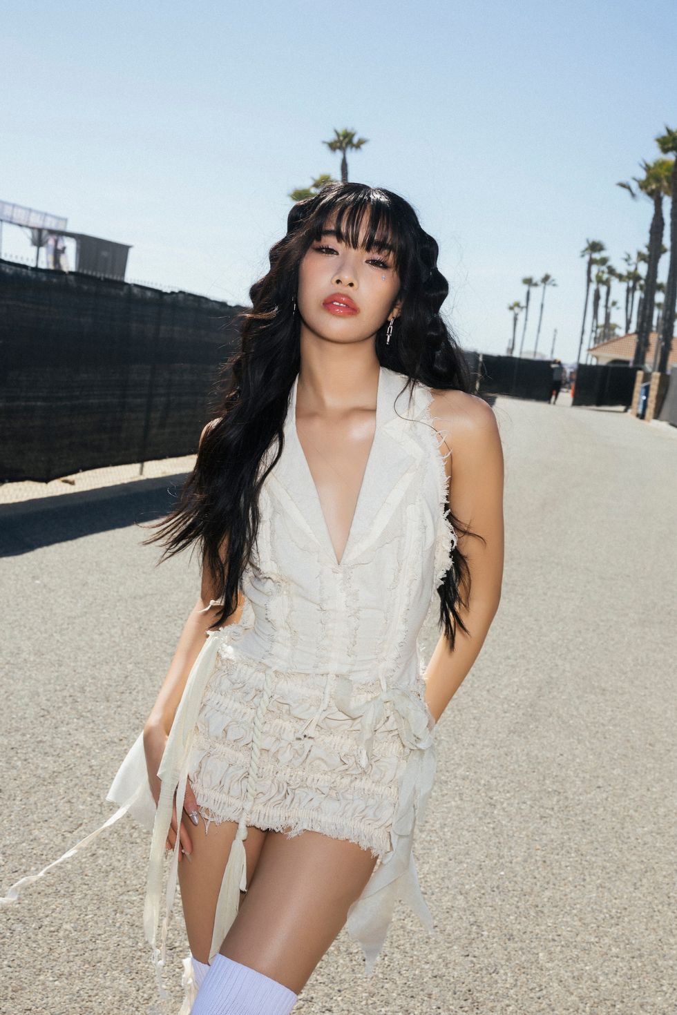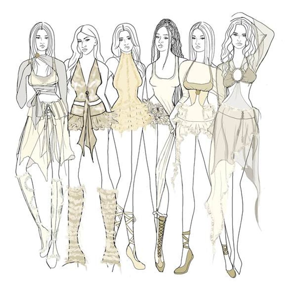 Since then, they’ve been on a global sprint, performing the song and executing its floor-shaking choreo around the world. This past Saturday, they took the song to California for a performance at Wango Tango. There, they were dressed by none other than RuPaul's Drag Race royalty Gigi Goode, who put the girls in an ethereal set of deconstructed white and earth tone drapery. “My goal was to do something fresh and light that the girls hadn’t been seen in before. I used a lot of elements from my latest collection, and twisted them into something with a lot of texture and movement to compliment the girls’ insane dance ability,” Gigi Goode told PAPER. “The looks feel like the canvas, and the girls are the paint.”