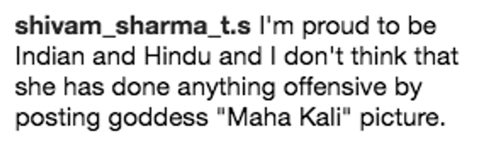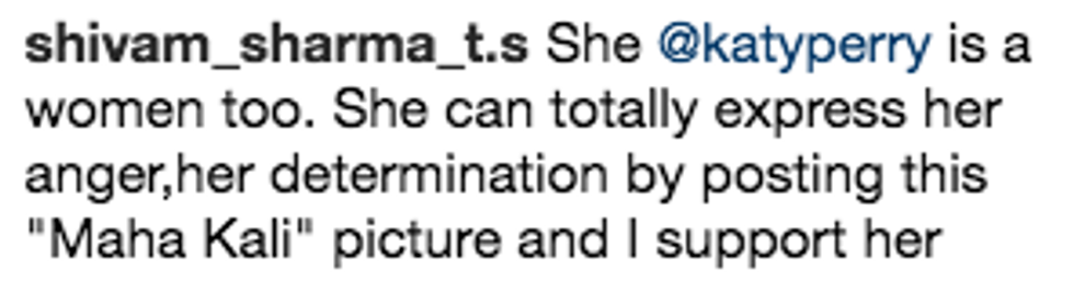 Defenders both Hindu and otherwise said that the image didn't bother them, and that Perry was merely expressing the feeling of female empowerment that Kali Maa represents.