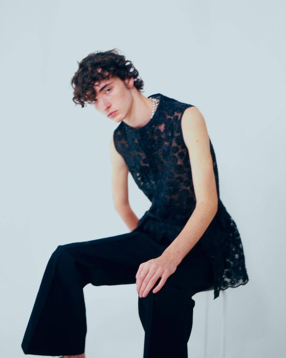 He chronicled the entire process via a short documentary premiering exclusively with PAPER, which captures the two weeks leading up to both his romantic, '90s grunge-themed show as well as fashion's biggest night. We see everything from Nicholson in his studio interviewing with a New York Times reporter to him unpacking his creative mindset when designing a collection (it involves a lot of music) to finally the craziness backstage at his SS22 show.