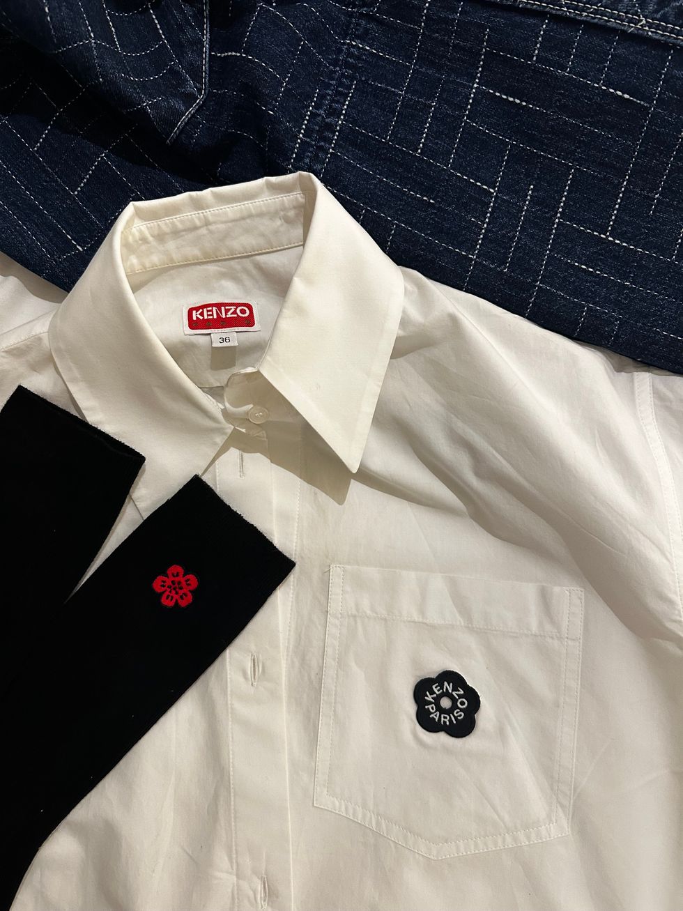 Fresh off his collaboration with Pharrell Williams for Louis Vuitton, Nigo invited another friend into his creative universe for Kenzo’s collection during Paris Fashion Week. New York graffiti legend Futura mixed his signature style with the brand, specifically redesigning the Kenzo flower and incorporating his popular atom logo. Together, Nigo and Futura brought a ’90s streetwear edge to Kenzo’s heritage that also spoke to the pair’s longtime friendship (they first met in 1996 in Tokyo).