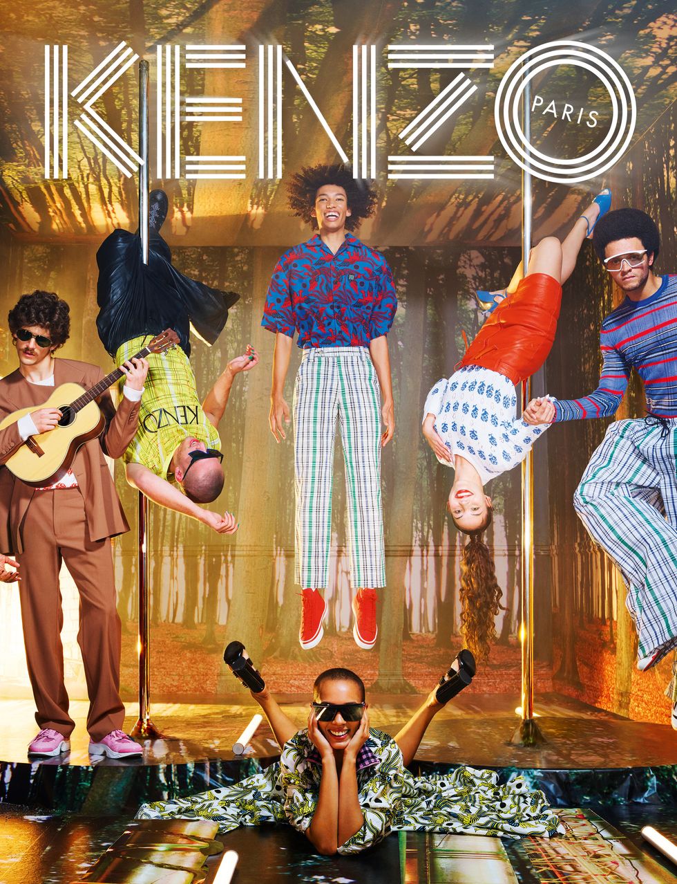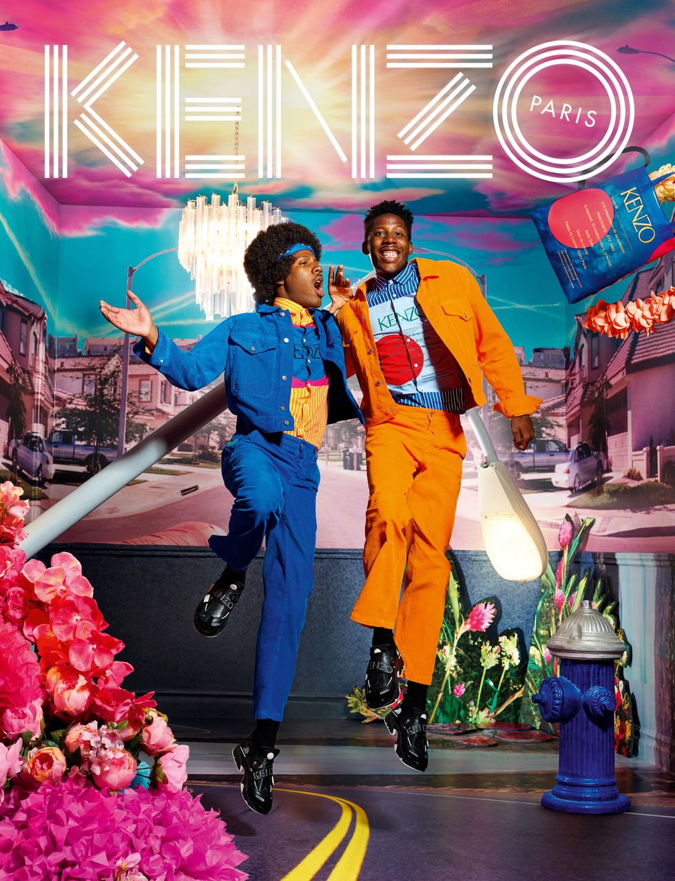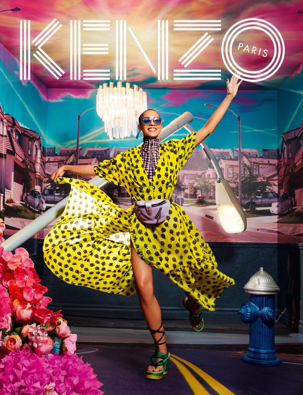 LaChapelle, most recently been in the news for shooting Travis Scott's Astroworld album cover and KKW beauty's latest collection, brought his calling cards to Kenzotopia. The shoot is a kaleidoscopic surreal universe, bursting with energy and personality. Each scene is actually a meta-David LaChapelle work, as the cast poses on theatre-sets, in front of backdrops that are actually photos LaChapelle took in Maui, where he frequently works. In an interview with Leon and Lim, LaChapelle explains that campaign's utopia was inspired by Maui's landscape, and suggests the placement of exterior shots (of forests, cityscapes and suburbia) in the shoot's interior, holds a metaphor for finding the joy within.