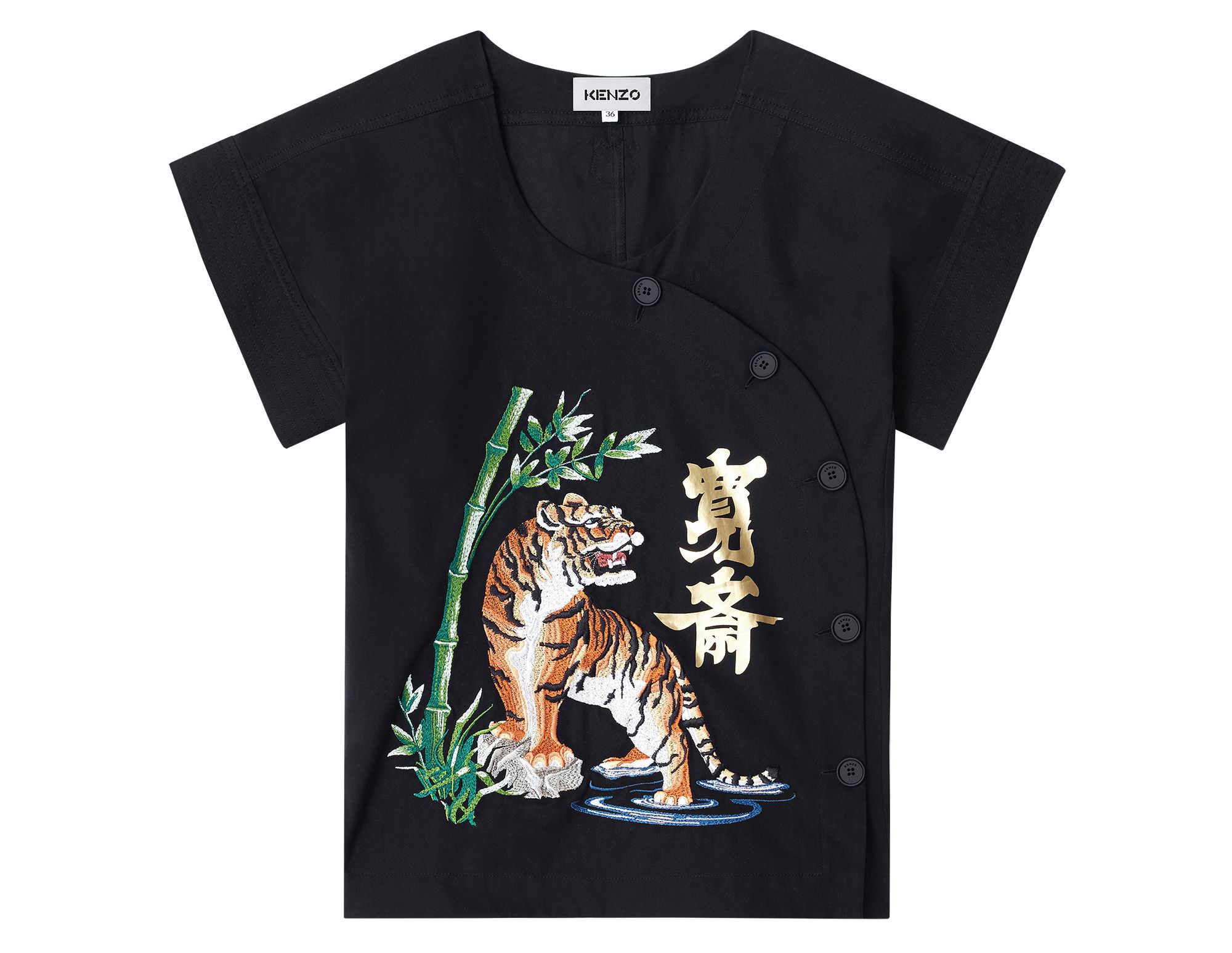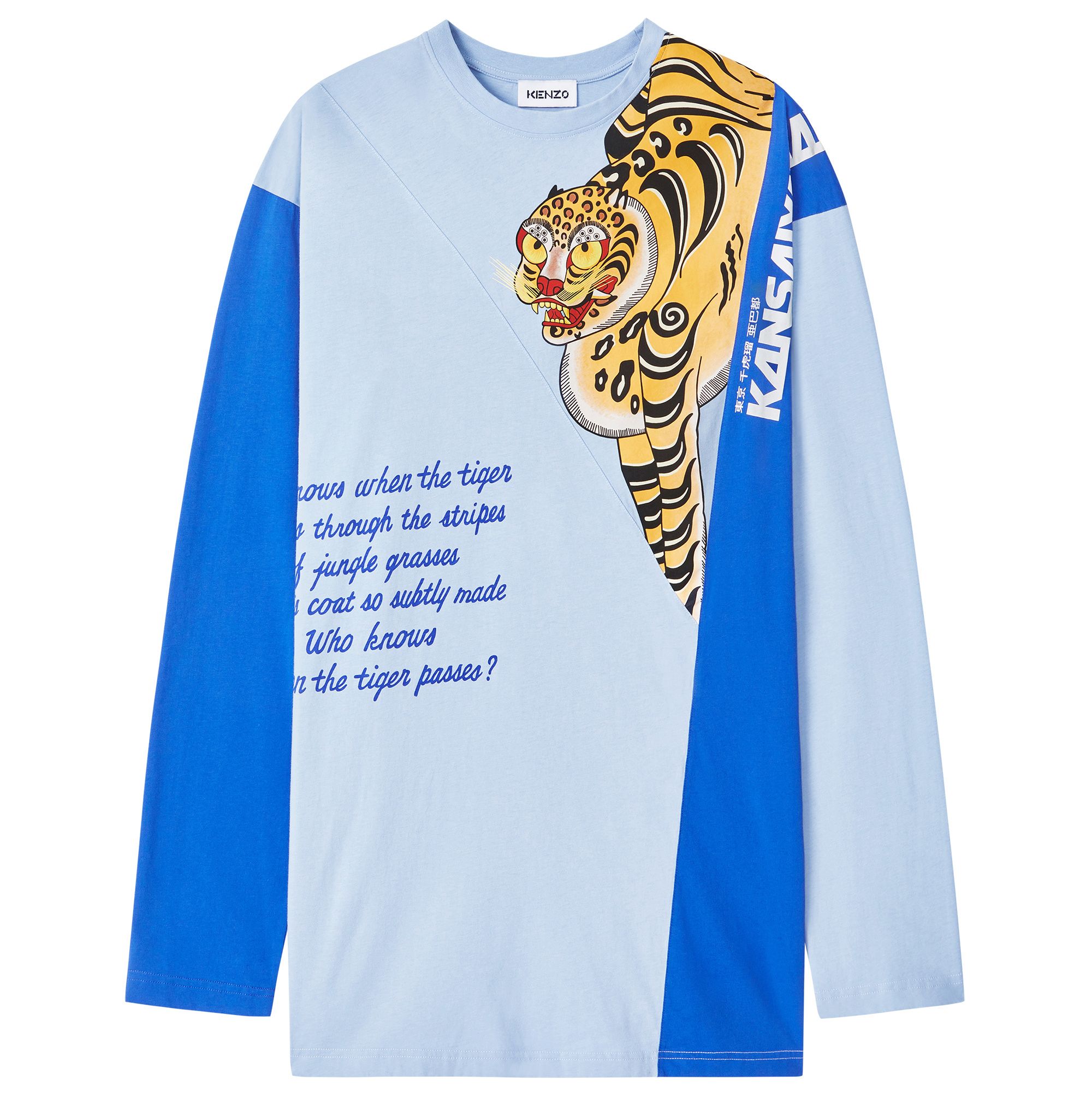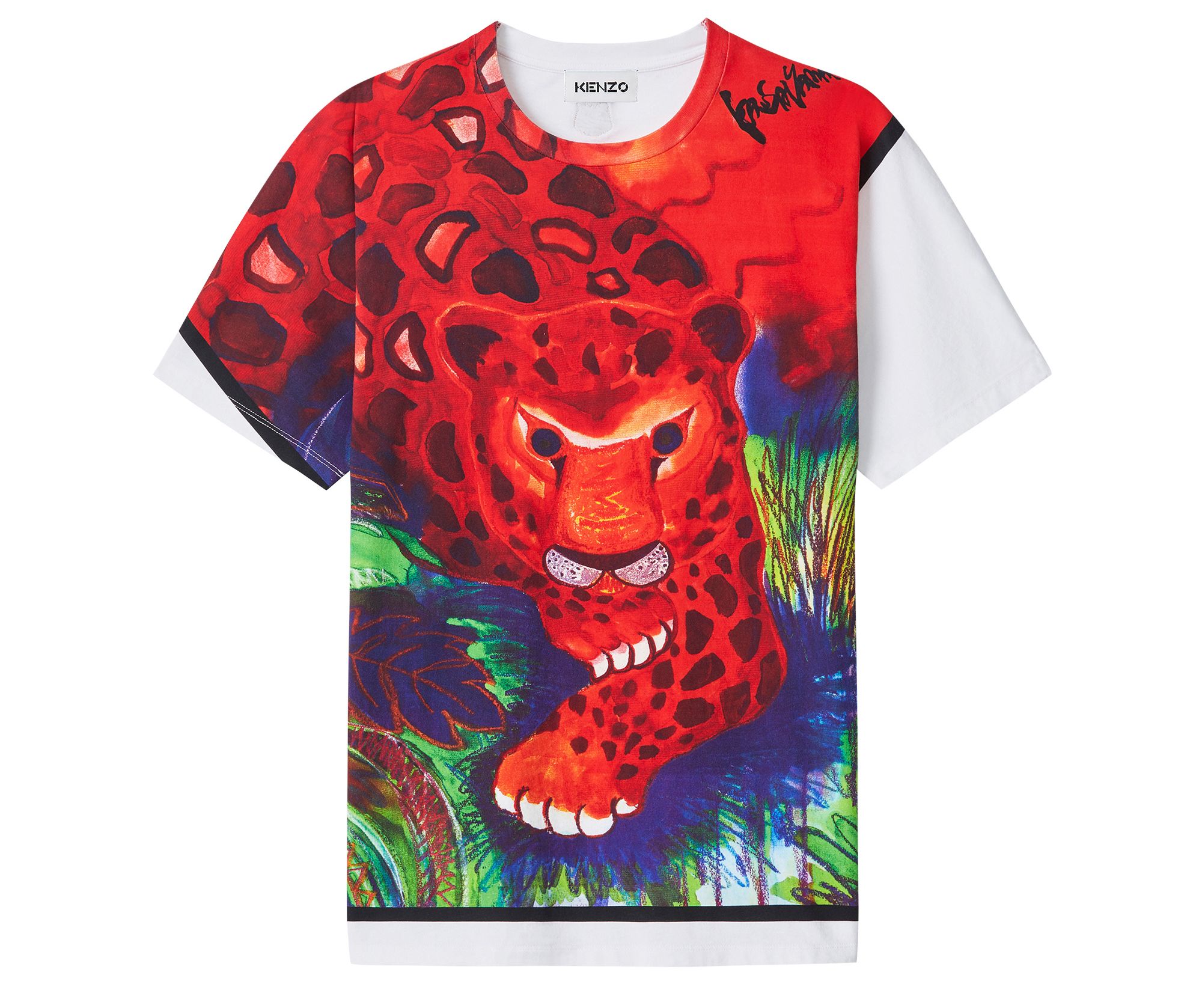 After Baptista got both of their blessings, they started to work on the collection, which includes artworks from Kansai's archives reworked and mixed with archival prints from Kenzo. Animalia motifs feature aplenty, no surprise given that they would both reference traditional Japanese animal art in their work. (Kansai's animal prints had pop/manga treatment while at Kenzo it was more about nature.)