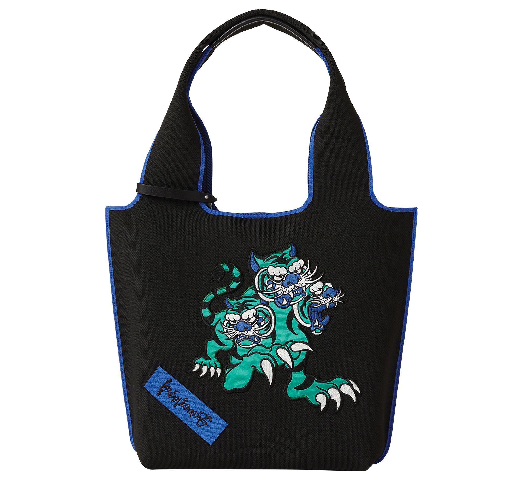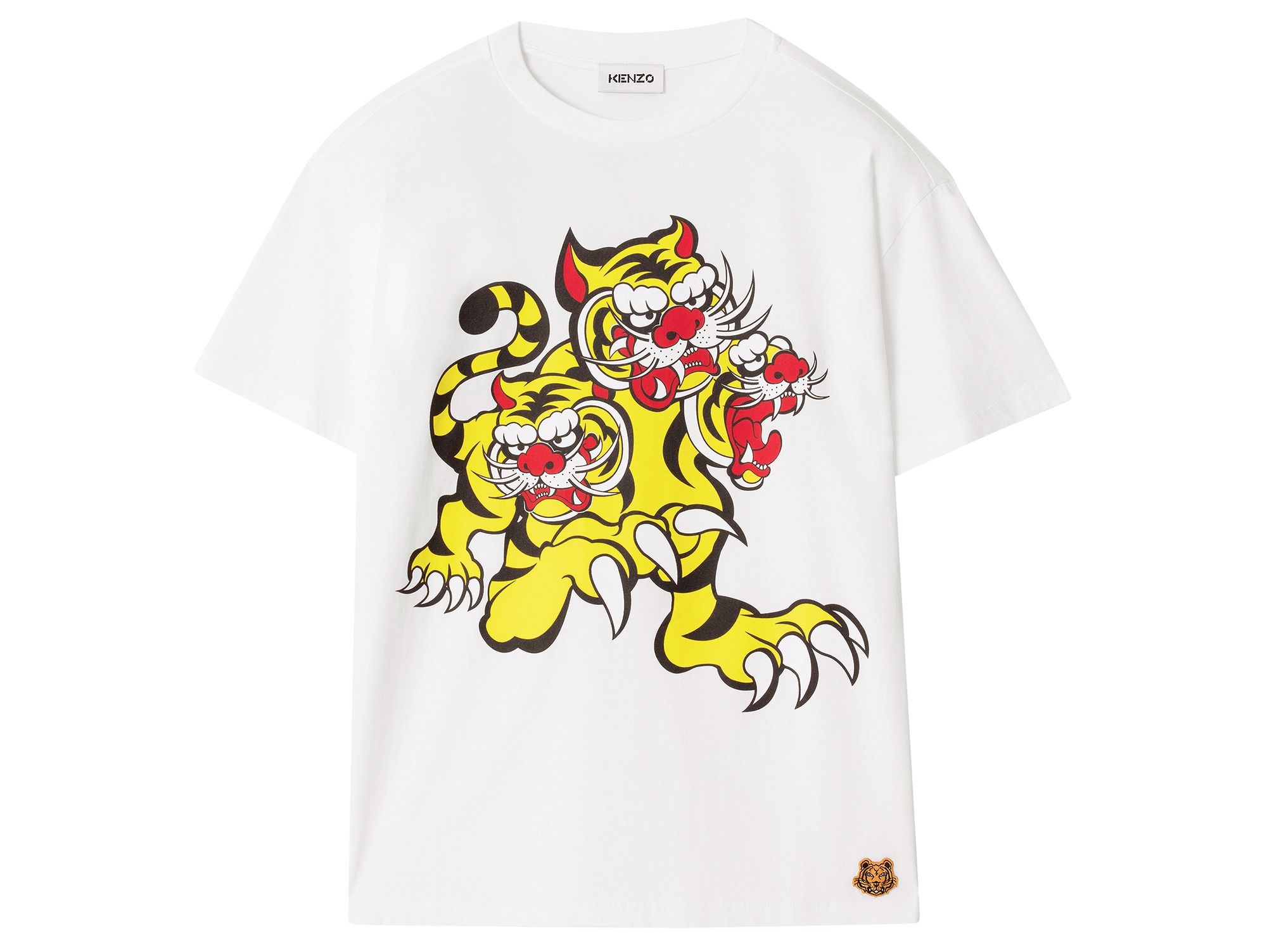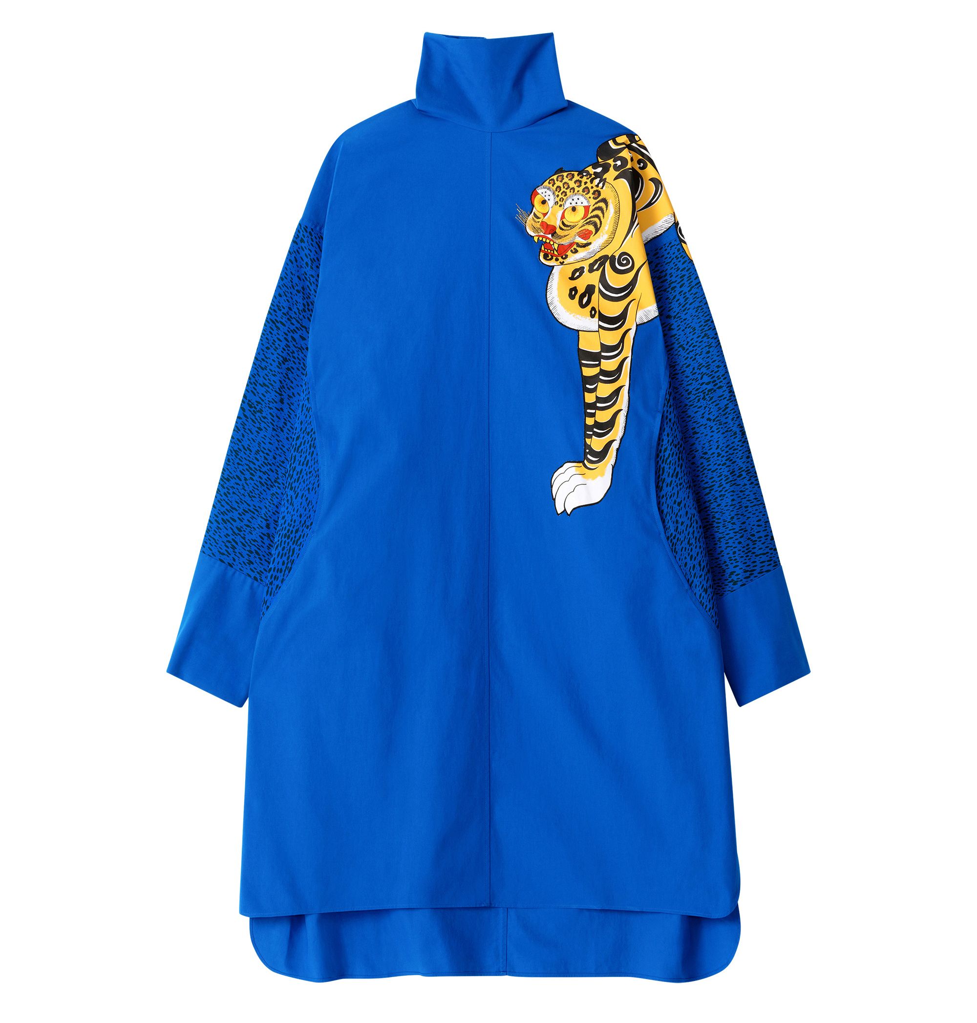 After Baptista got both of their blessings, they started to work on the collection, which includes artworks from Kansai's archives reworked and mixed with archival prints from Kenzo. Animalia motifs feature aplenty, no surprise given that they would both reference traditional Japanese animal art in their work. (Kansai's animal prints had pop/manga treatment while at Kenzo it was more about nature.)