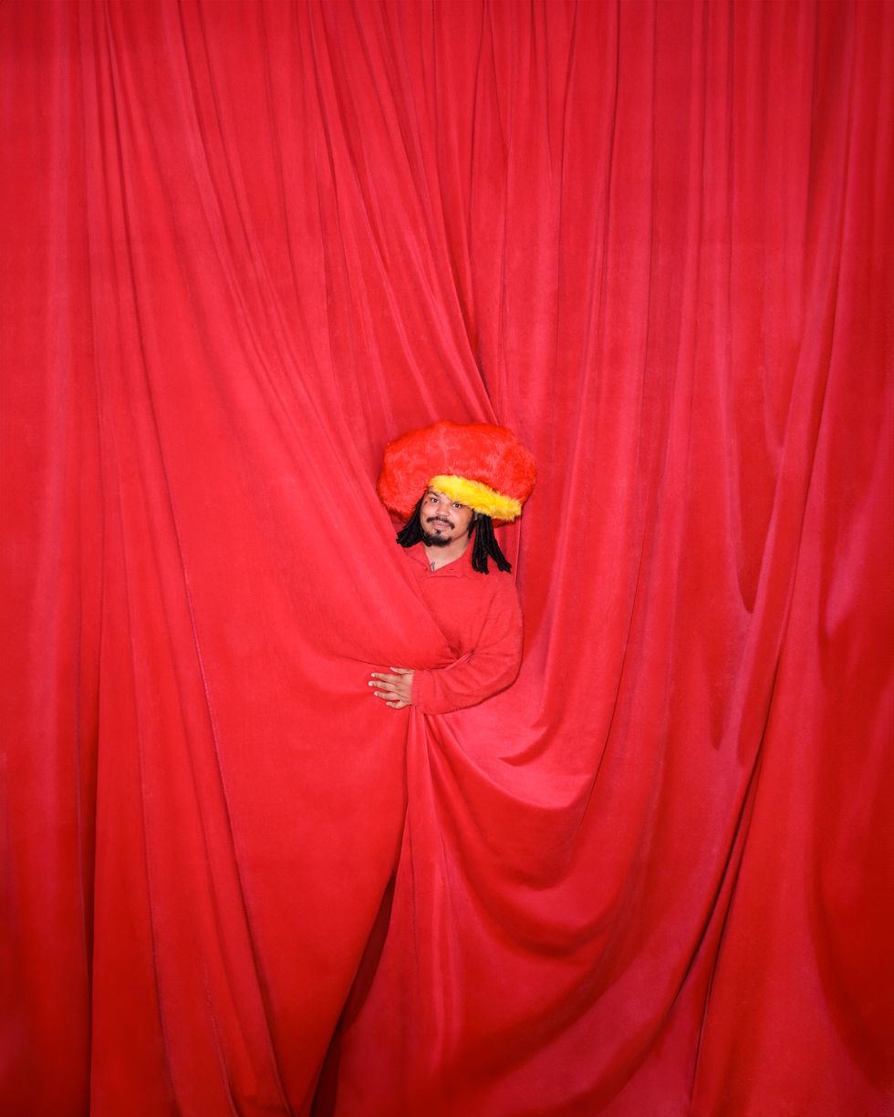 Gown, shirt and pants: Willy Chavarria, Hat: Benny Andallo