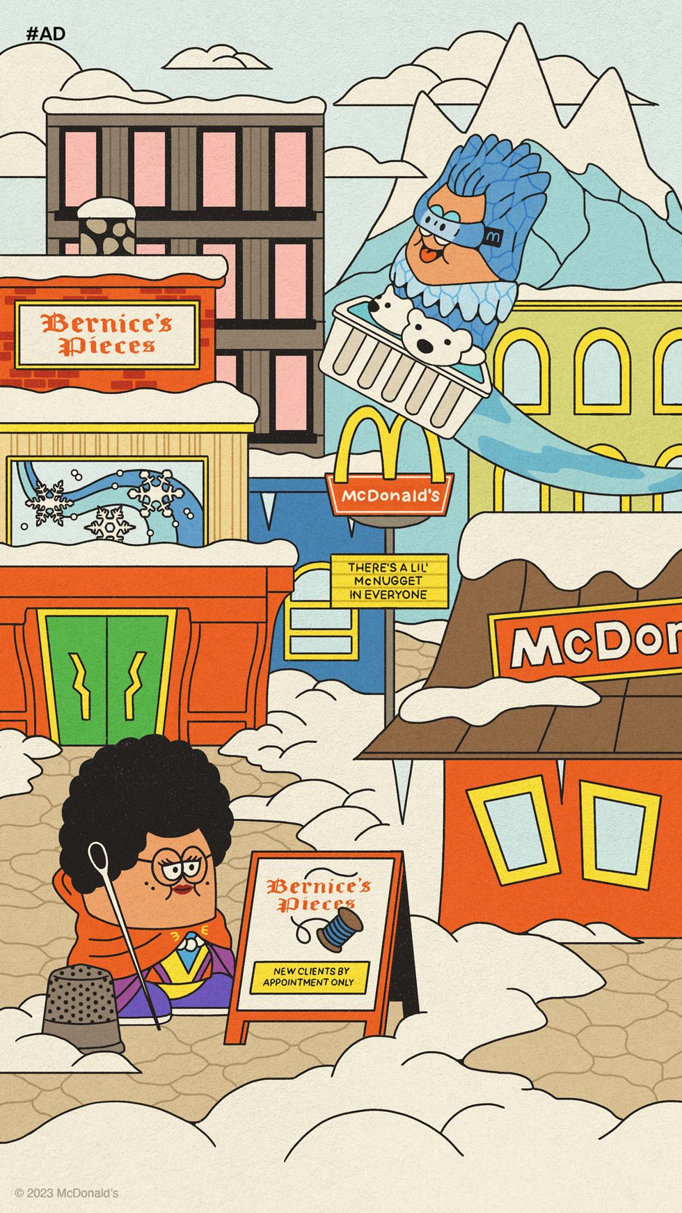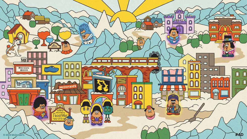 Kerwin Frost, the artist, designer, and general creative force of nature is here to ice up your life. Frost has utilized his distinct creative mind to create the eponymous world of Frost Way, a land of cold camaraderie and quiet that’s home to a new group of McNugget Buddies designed by Frost himself. Bringing back the iconic McNugget Buddy Collectibles for the first time in over 25 years, McDonald’s will be including one select McNugget Buddy Collectible in each Kerwin Frost Box, available in the U.S. and other select markets around the world starting December 11.