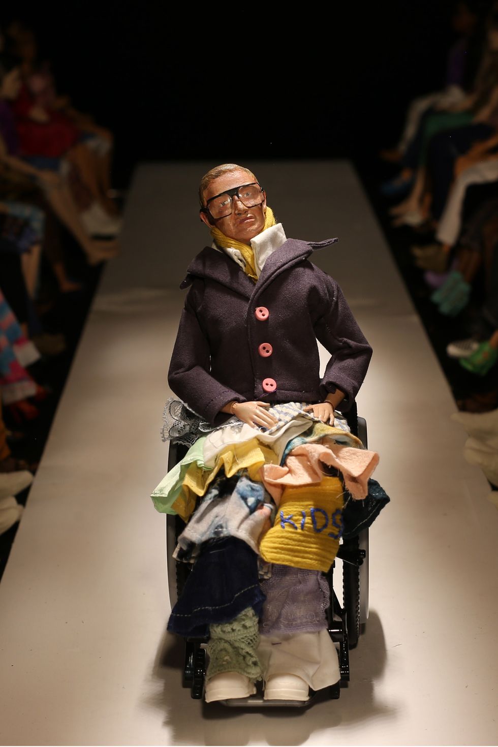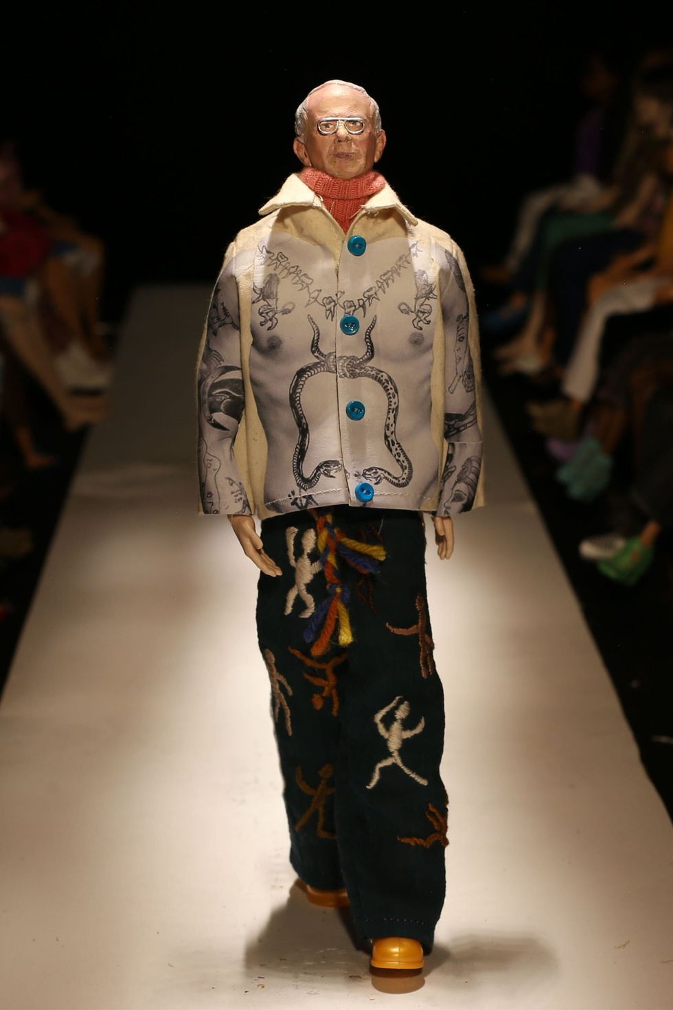 His cast of "claymation" models included the likes of Bernie Sanders, Naomi Campbell, Stephen Hawking and Elon Musk walking the runway in front of Anna Wintour and Kim Kardashian caricatures. The original plan, he says, was to stage a real fashion show and hire doppelgängers of famous people to attend as a sort of statement on how fashion has long correlated the importance of a show with who actually attends.