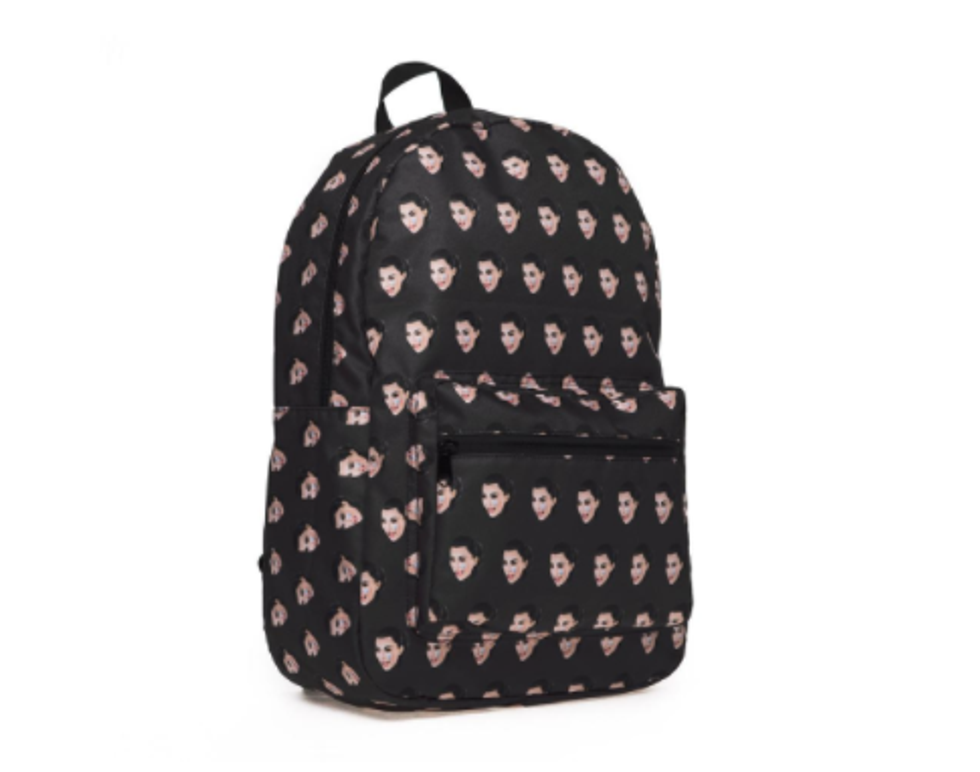 Kim Kardashian West dropped her latest Kimoji collection today and it's filled with merch perfect for back-to-school season. In addition to this summer's butt pool float, "wifey" slides, "savage" underwear and "lit" lighter (among other items), the school supplies include tech decals, Kim-shaped post its, a cry face backpack, a butt-shaped USB and a retro-style metal lunchbox with vintage tracksuit wearing Kim on the front. Prices range from $8-$60, not including shipping.