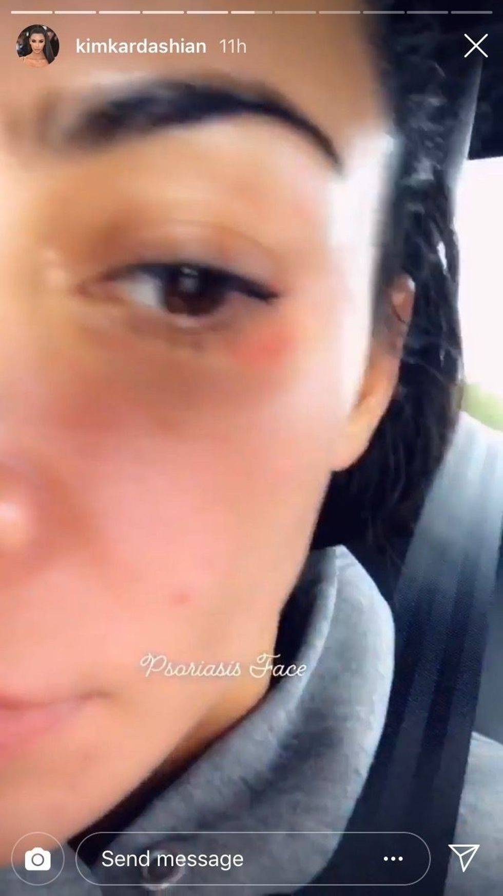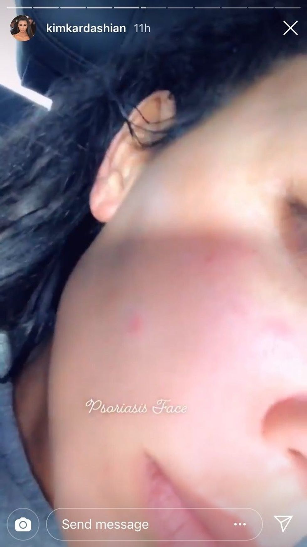 In a story captioned "Psoriasis Face," the reality star and beauty mogul posted a close-up of her face, offering a real glimpse into what it's like to live with the condition.