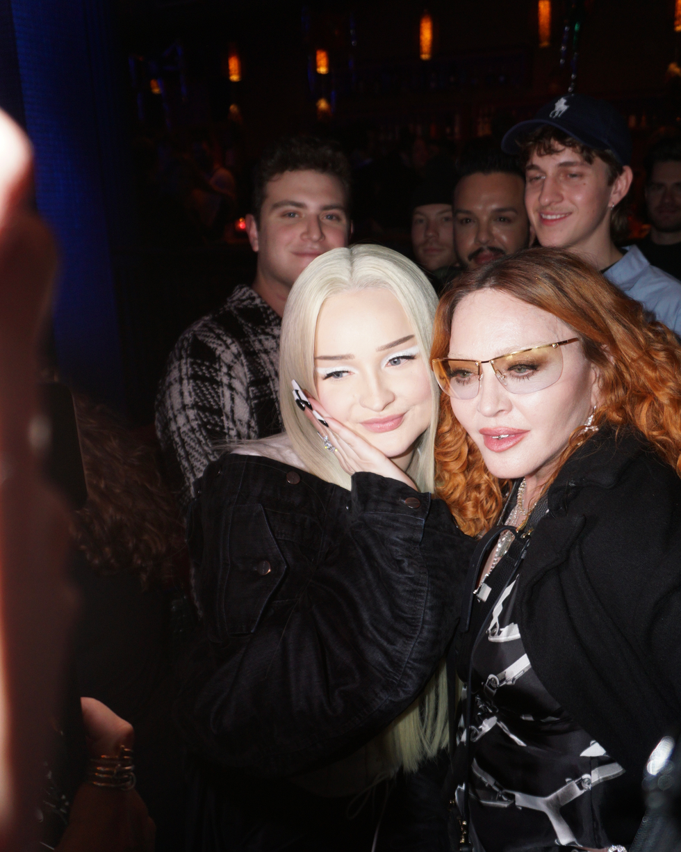 Suddenly, Petras and her cohort — creative director, glam team, managers — all excitedly make their way toward the front of the restaurant, moving as one pack. What’s going on? “Madonna’s here,” sitting casually in a booth with photographer Ricardo Gomes, fresh off the announcement of her global tour. Petras’ interaction with Madonna appropriately draws a small crowd, as radio’s newest disruptor chats with the woman who made it possible for something like the Slut Pop EP to exist. Petras references Confessions on a Dancefloor and divulges that it made her feel less alone listening to it at home in Germany as a teenager.