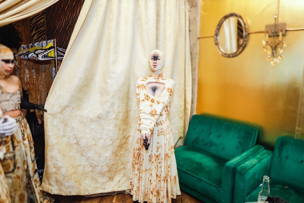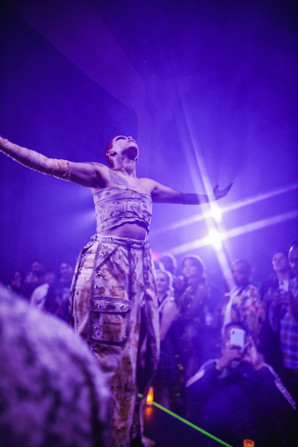 At KRATER, there are no severe rows of seats, hushed tones or coy smiles. There are no shrill-voiced TikTok influencers (who seem to have taken over the front rows of NYFW '23). Each runway performance is bookended with thundering deep house DJ sets where the lights are turned off, drinks are set down and showgoers disintegrate into a pulsing, throbbing mass.