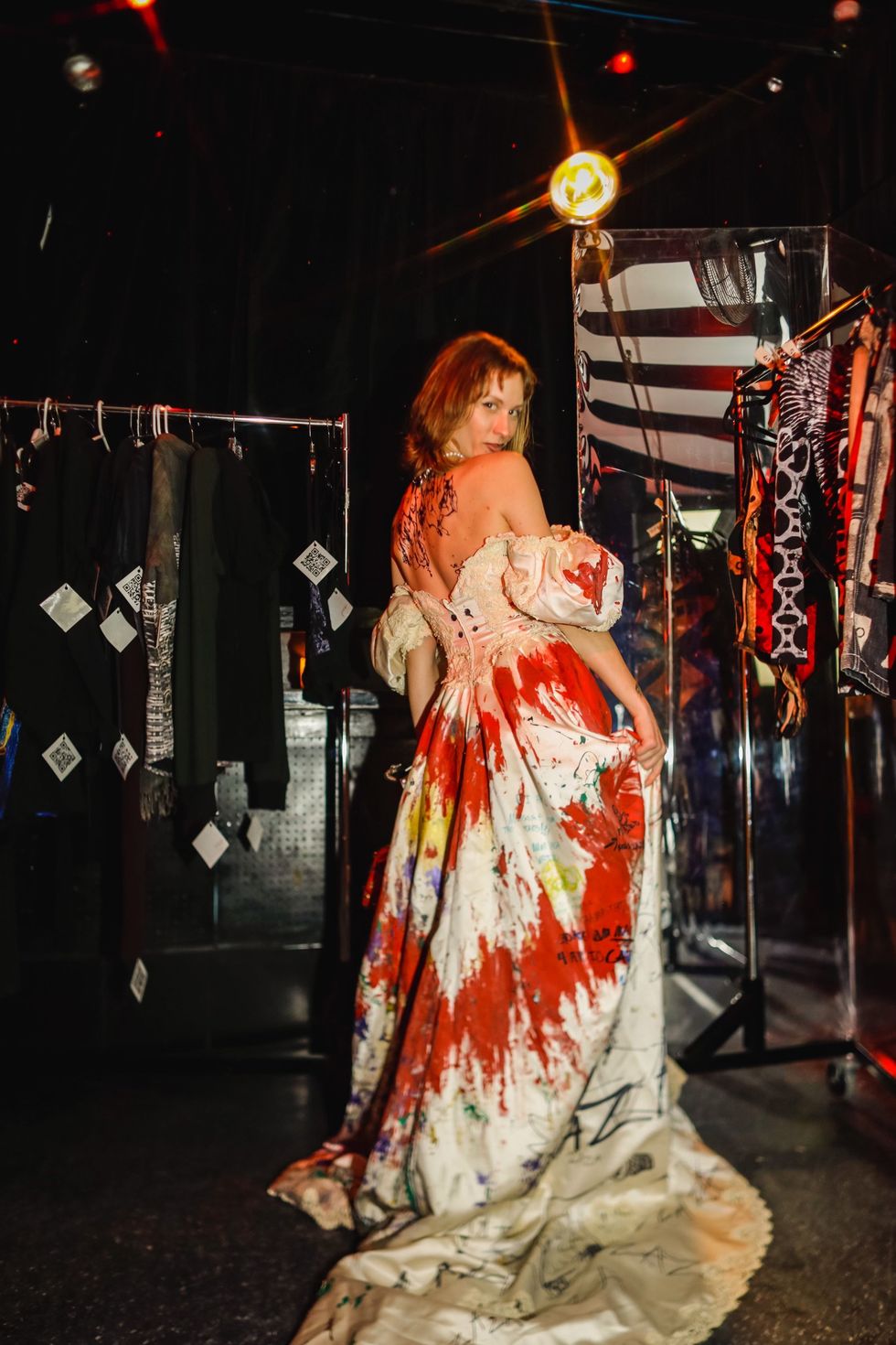 Supported by Creatives Rebuild New York's Guaranteed Income for Artists program, the underground fashion movement was able to bring their experimental and thought-provoking work to the runway. Beyond putting on a strange and unforgettable experience for friends and supporters, KRATER's mission is to create a more sustainable and transparent fashion industry. By bringing NYFW to Bushwick, Giselle explains, "this is us reclaiming New York Fashion Week."