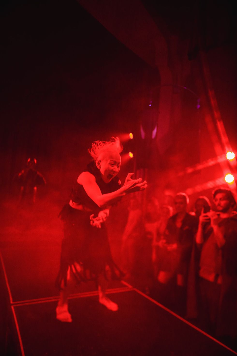Branded as the "ANTI-FASHION" fashion show of New York, KRATER subverts the standard Manhattan runway show by centering the collection around emerging designers who are pushing industry boundaries themselves. The array of transgressive designers includes Femlord, Official Rebrand and Raspaditos, Erik Bergrin and Giselle, all of who debuted their new collections and collaborations through a series of disruptive multimedia performances: body contortions, butoh dancing, sage-smudging, bubble-blowing and lots of screaming.