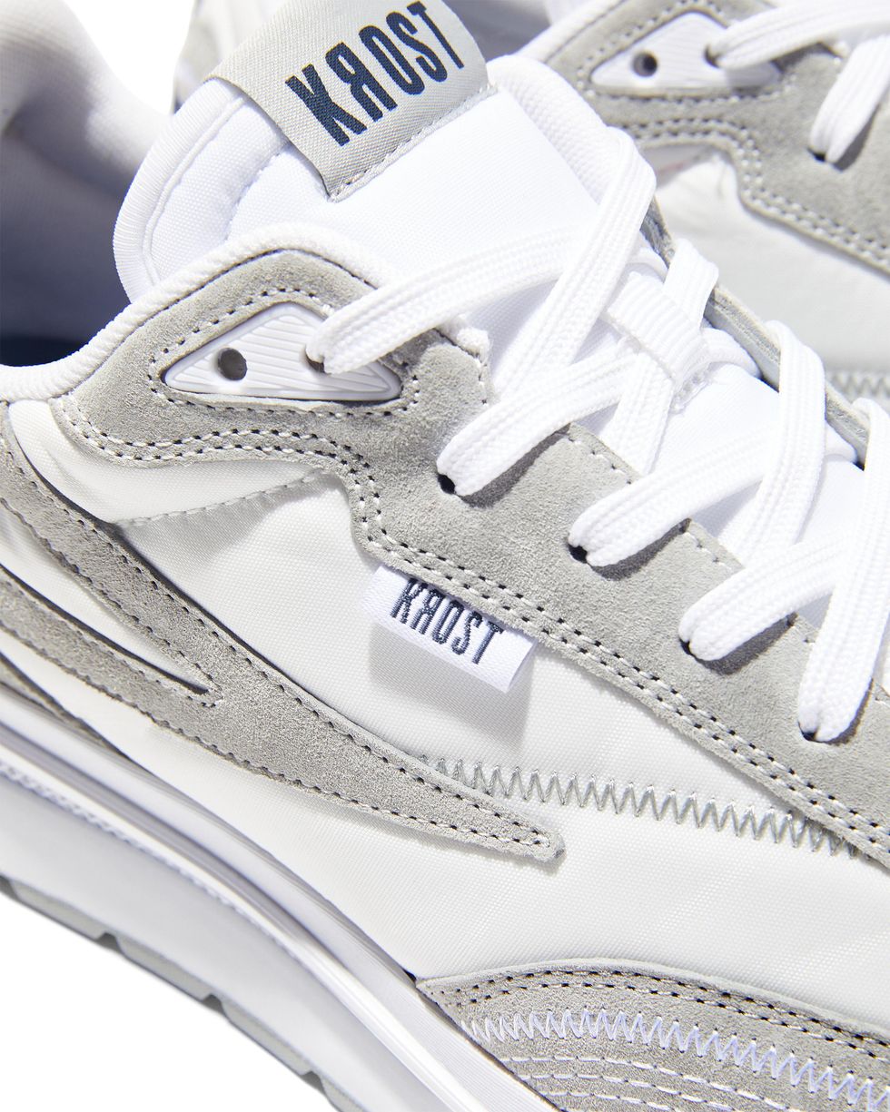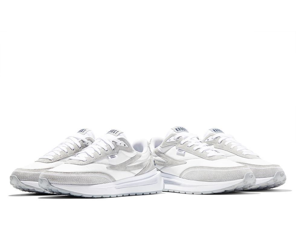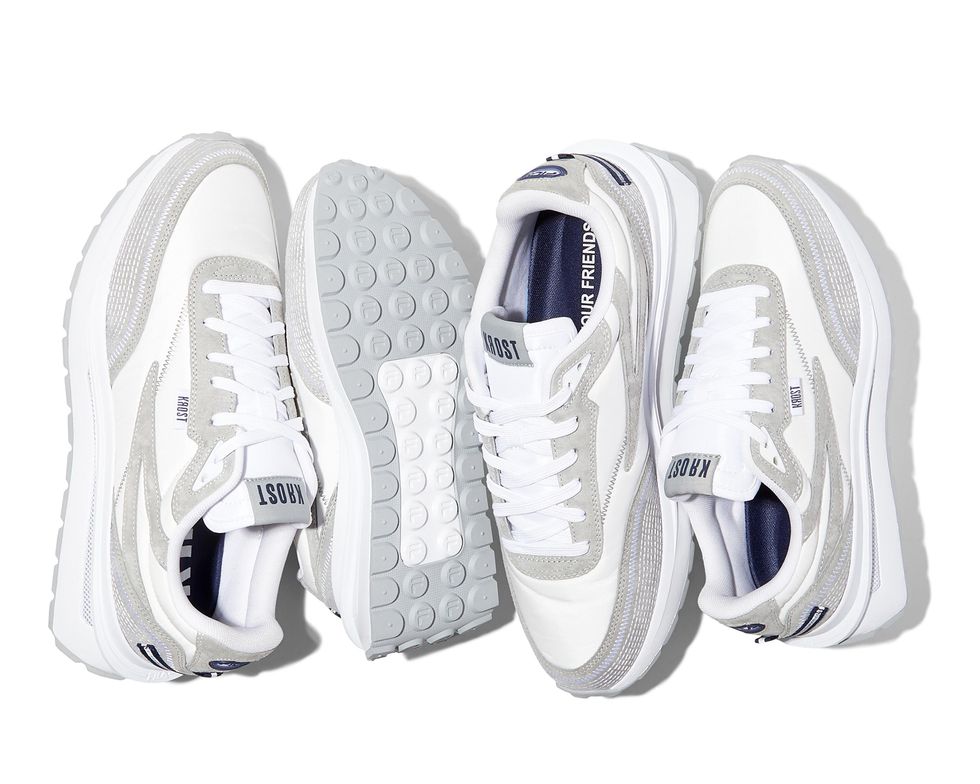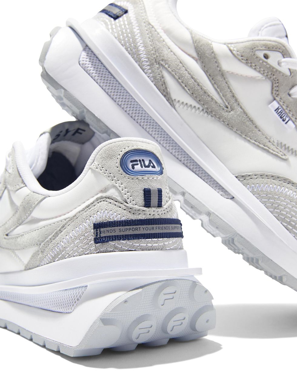 The collaboration blends KROST's clean aesthetic with FILA's high-performance legacy: a sleek white, gray and navy colorway complement the durable, sport-ready suede, nylon and recycled leather materials. Of course, Krost's moniker and the FILA logo are both featured on the back of the shoe, but the pair take Krost's "Support Your Friends" slogan one step further.
