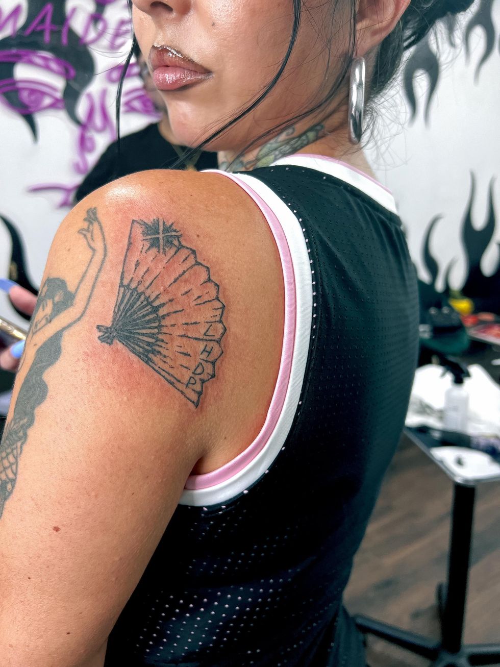 "At first I was thinking to get my La Goony Chonga logo, but the tattoo artist had already coincidentally drawn up a super cute abanico," she explained. "It was all full-circle moment, especially at the end of my show when all my Gooniez had their 'LGDP' abanicos up in the air!"