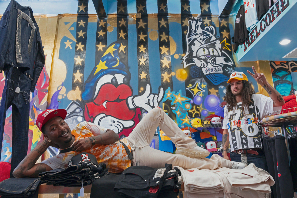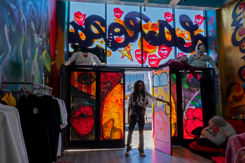 Six years later, the self-described "comotional" brand now counts everyone from A$AP Rocky to Bella Hadid and Erika Jayne as customers. But even as a line imbued with a DIY punk rock spirit, it's one that also takes pride in its refusal to skimp on overhead costs, as proven by their use of premium materials and an attention-grabbing storefront on a coveted stretch of Melrose Avenue. From the sidewalk spray painted with their distinctive red lip logo to the crowd of LA tastemakers who hang around the store, the aptly named La Ropa Land stands out amongst all the blow-out bars and boutiques lining the rest of the street.