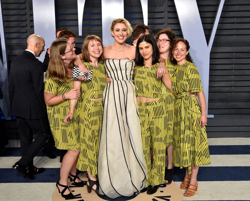 Last night's Oscars saw a lot of great fashion statements, but one moment that went relatively unnoticed was Greta Gerwig's group of female friends all wearing different cuts of the same yellow-and-black print.