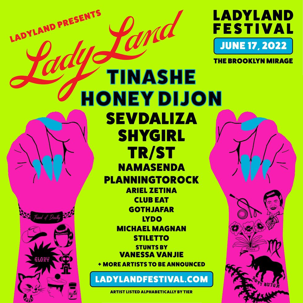 The LGBTQ+ festival is set to return to Brooklyn Mirage this June with headliners Tinashe and Honey Dijon. Expanding to three stages this year, LadyLand's 2022 lineup also includes experimental pop diva Sevdaliza, British baddie for the night Shygirl, industrial synth-pop artist TR/ST, PC Music's Namasenda, nonbinary producer Planningtorock, Ariel Zetina, Club Eat, Goth Jafar and more, plus stunts by none other than the distinguished Drag Race alum Vanessa Vanjie.