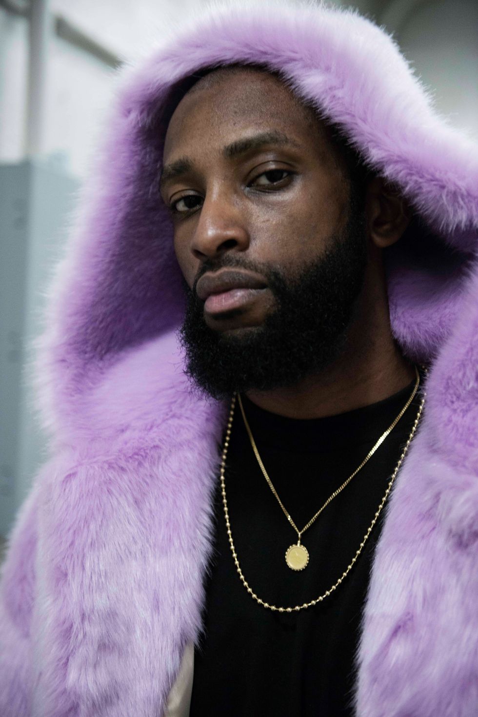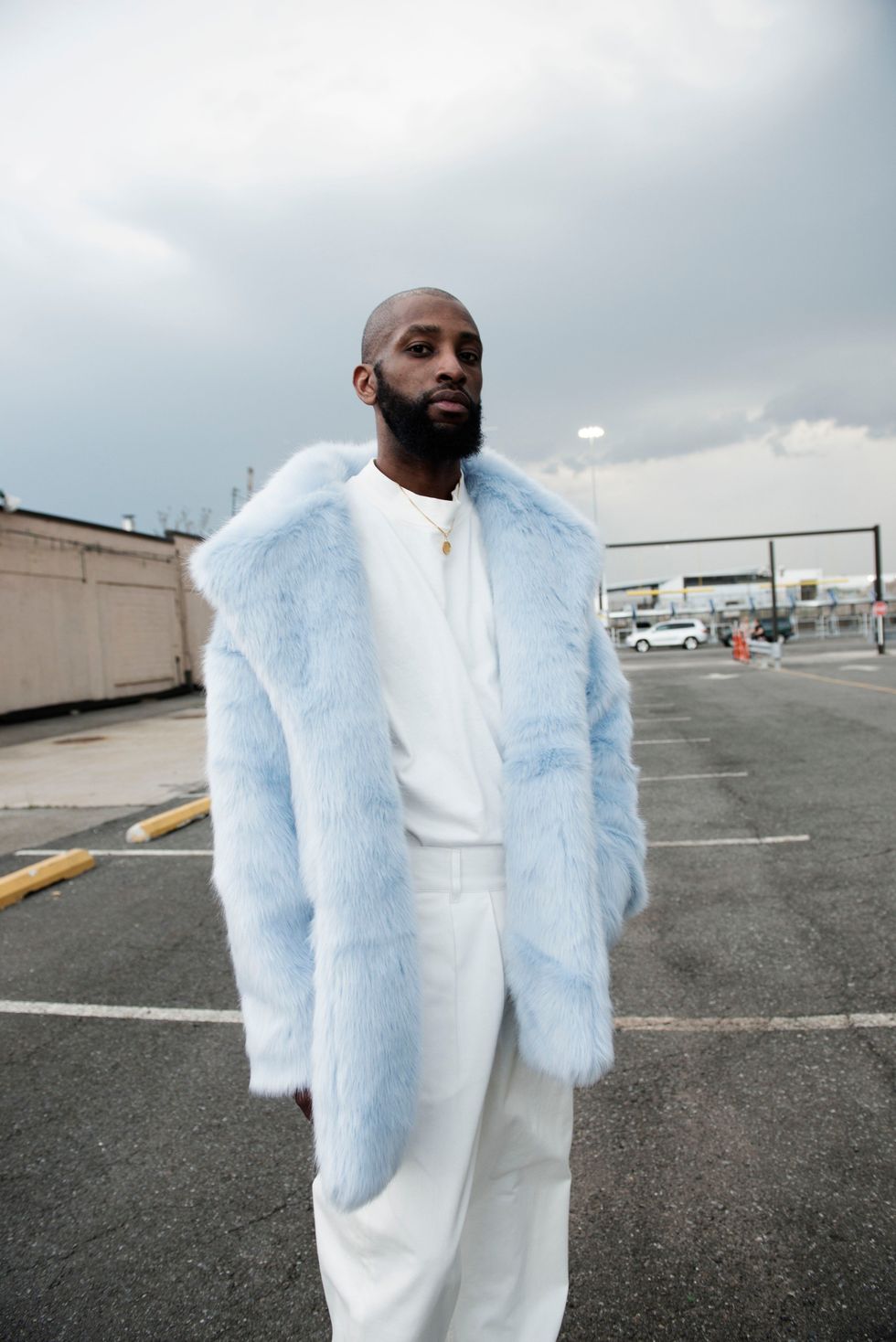 Simply called the Fur Capsule, Landlord offers a fuller line of ethical faux-fur wares, from coats and bags to hats and bombers, in a range of colors including purple, blue, pink, white, olive, and grey. An alloy brass college pin bearing the Landlord name is tossed in for extra drama.