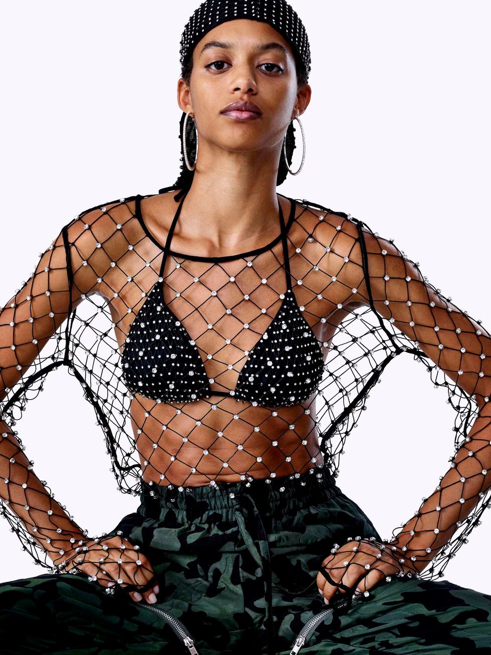 Last month at his NYFW show, Smith teased pieces from the collection on the runway alongside his main line. Denim zip jeans and slim sunglasses from the capsule were paired with mini-dresses and sheer bodysuits. Elsewhere in his ASOS Design line (which includes plus options) are full camouflage and leopard looks, swimsuits, vinyl tops, and faux fur blouses. It also includes menswear, a new category for Smith which he unveiled in his main collection for spring 2019. For this partnership, the men's pieces include slim-fit glittery t-shirts, rhinestone flecked bomber jackets, tartan ensembles, and jumbo velour hoodies.