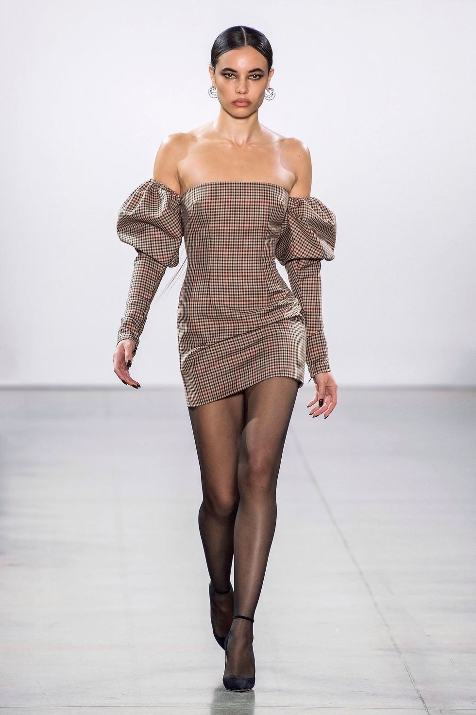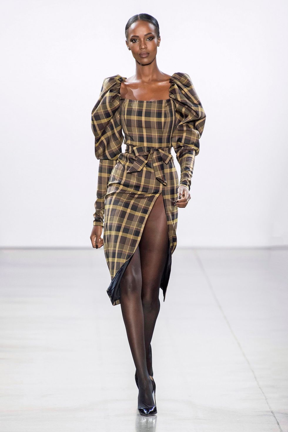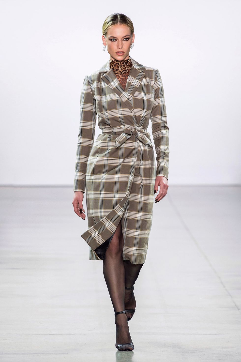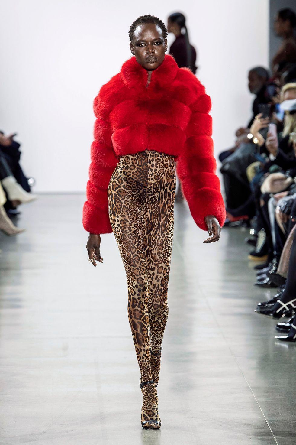Plaid textiles and wool fabrics were unconventionally paired with body-con tailoring, and midi-length evening dresses and pencil skirts were accompanied by suggestive slits and sky-high heels. The designer's use of fur also invoked a sense of affluence, styled with various animal prints to create the ultimate vixen. "I wanted everything to be sexy and expensive," Smith told WWD. "I wanted her to be super strong and super confident. I didn't want to shy away from it this season."