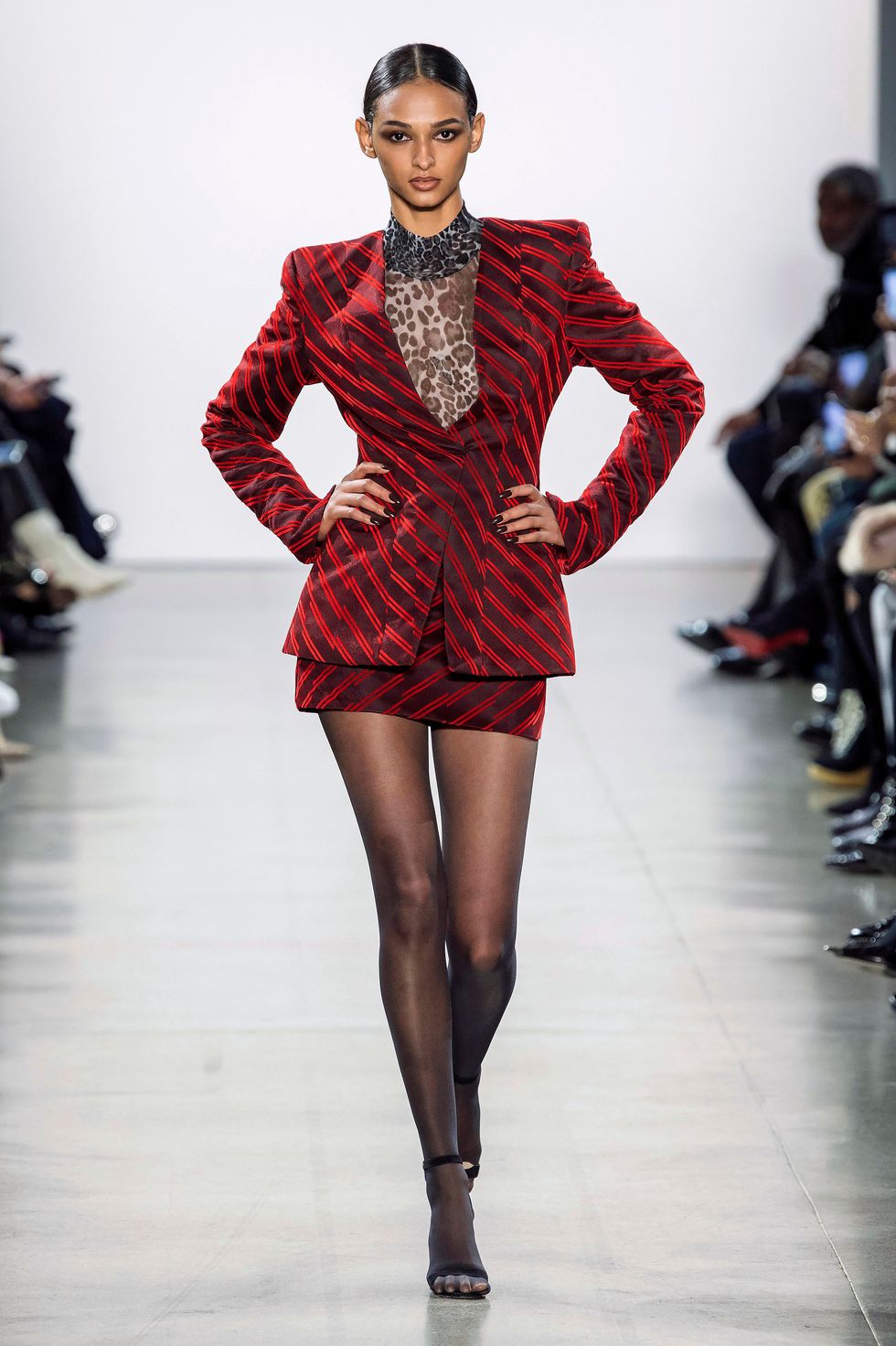 Since launching his eponymous brand in 2013, LaQuan Smith has juxtaposed the seemingly contrasting concepts of sensuality and luxury. The fall 2019 collection was no different — belted trench coats shielded animal-print chiffon, and sheer black hosiery accompanied plunging necklines. As a designer who has dressed the notable women that effortlessly command every room, from Beyoncé to Cardi B, Smith's collections have garnered quite the fanbase. As each model transcended down the runway to the sound of Hillary Banks's voice of The Fresh Prince of Bel-Air, the wardrobe of a powerful, fearless provocateur was reimagined.