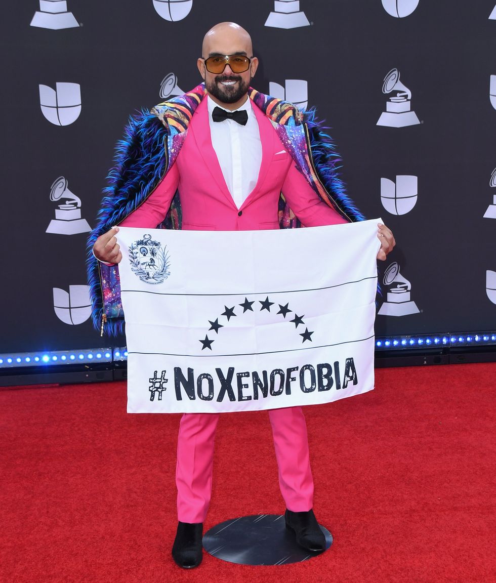 In the wake of Venezuela's economic crisis, a wave of videos have emerged documenting hate crimes against Venezuelans in places where citizens have fled, like Peru, Colombia, Argentina, Mexico and (of course) the United States, reports NBC. Looking dashing in a pink tux and furry coat, the Venezuelan singer nodded to this ugly trend and rallied for immigrants with a pointed flag.