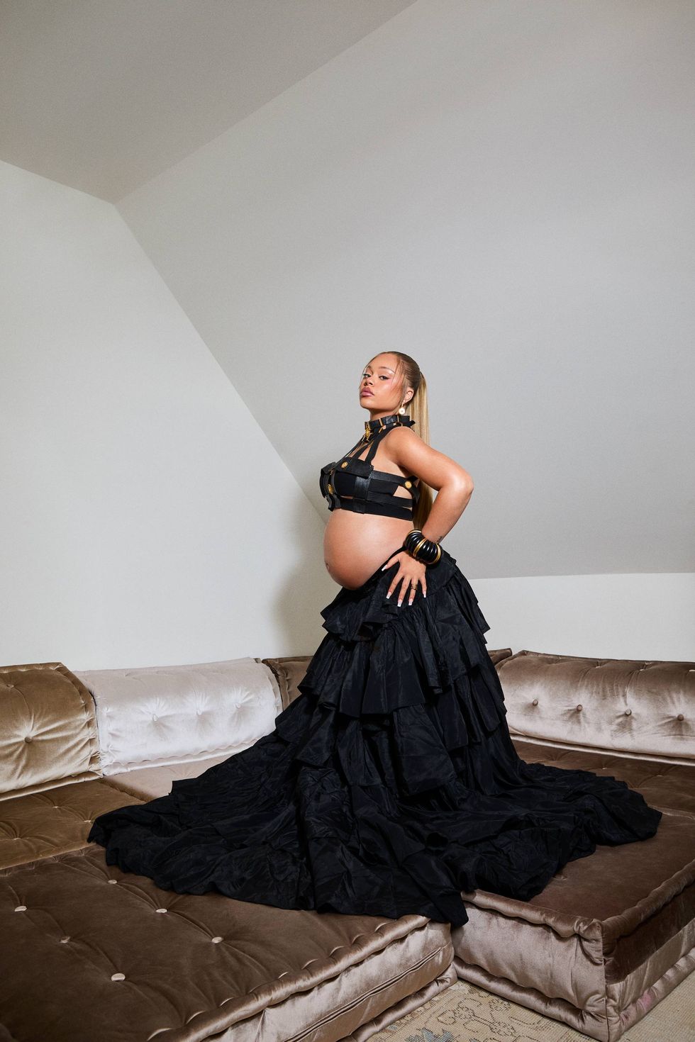 “I prayed when I was in the early stages of this album, still trying to find that creative pocket,” Latto tells me, her voice getting softer. “I prayed for inspiration. I remember I kept praying like, God, I need something, I need some new motivation, I’ve been doing this for so long, I need to be re-inspired. I need something to make me go hard. Little did I know that there was gonna be a baby on the way. God is always listening. It’s not gonna always be what you expect, but He’s listening.”