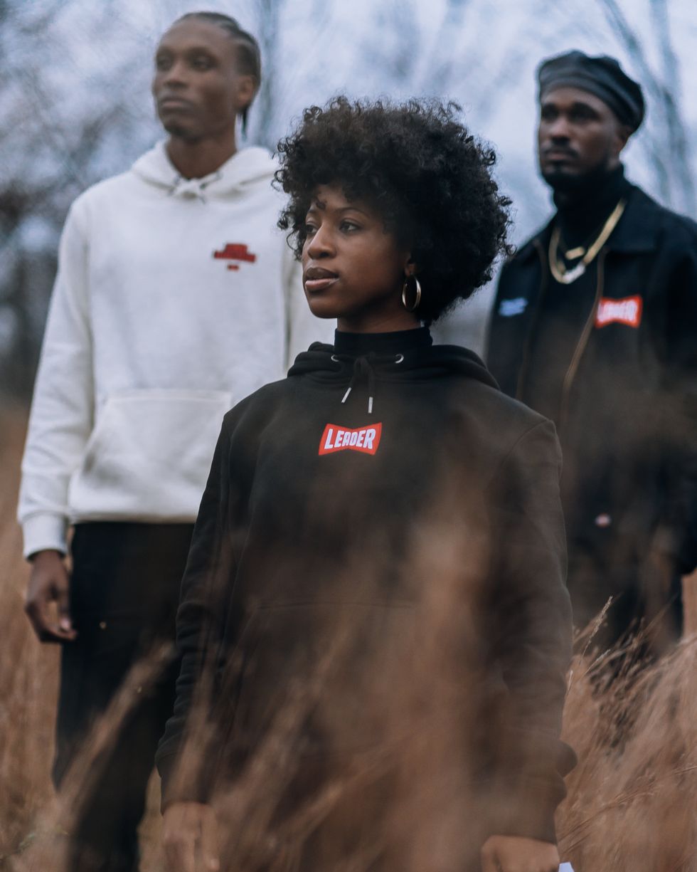 The line's two hoodies also spotlight civil rights; a cream model proclaims "We Must Be Leaders of Today," encircling a printed red, black and green Black Liberation flag (originally designed by Marcus Garvey in 1920), while a black style is printed with Leader's orange bow logo and the lettering, "Freedom and Justice."