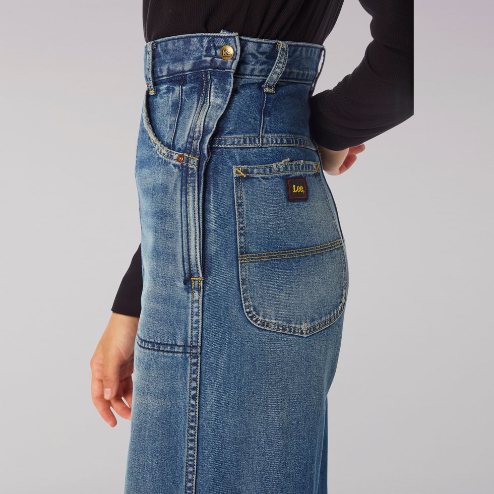 Rather than replicate whole pieces, with "Lee Vintage Modern," Lee remixes retro accents — washes, cuts and details — with current fall 2019 trends. The results include a long denim skirt, Rosie the Riveter-worthy "Union-all" jumpsuit, a railroad uniform-inspired jacket, everyday straight-legs, high-waisted painter's jeans and a cowboy jacket.