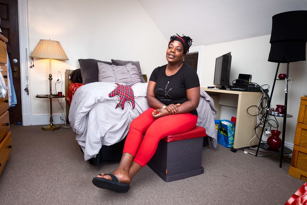 AISHA, 45, in a house she shares with 5 other women 14 months after her release. Flushing, NY (2017)