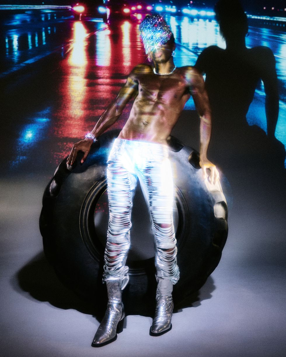 He’s referring to 2024’s “J Christ,” his comeback single that was very much a continuation of his debut album’s style. The video features him as the aforementioned child of God and was similar to “MONTERO (Call Me By Your Name)” in the way it merged flamboyantly braggadocious bars with biblical themes. It ends with a Noah’s Ark-style flood and the ominous words “Day Zero,” which Lil Nas X says was, in its own way, “a prophecy.” “It destroyed the old way of everything,” he shares. “After that, nothing was the same ever again. It made way for now.”