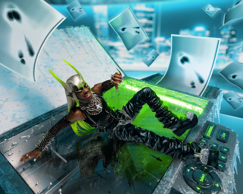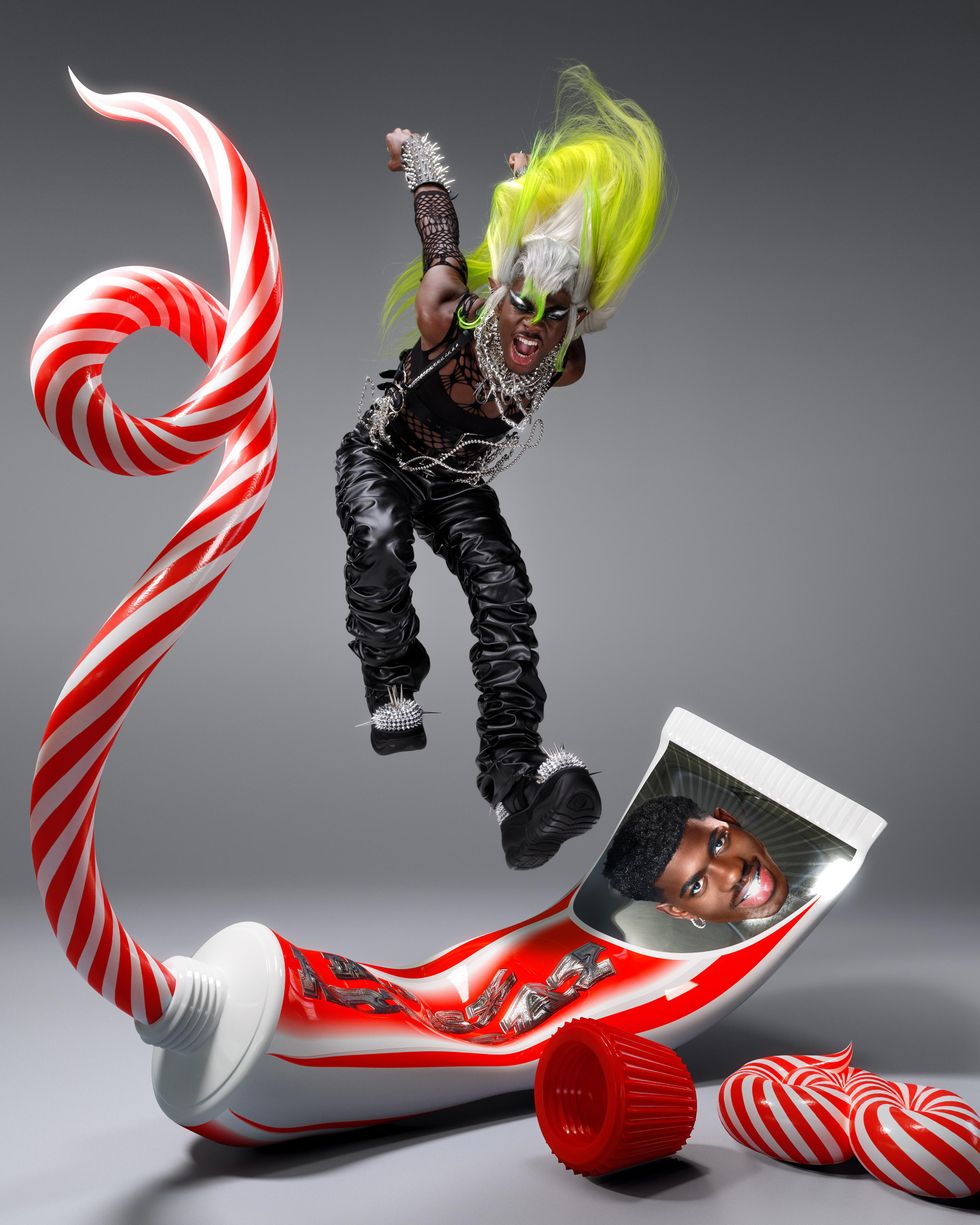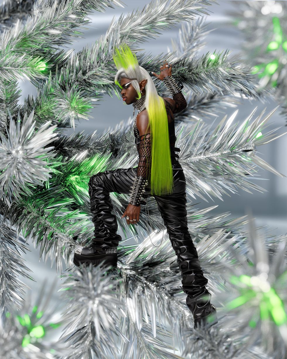 Hill has shown how adept he is at directing your attention where he wants it, which is in part why he loves embodying different characters in his fashion and music videos. He's hung up the cowboy hat to trade for a cyberpunk Santa getup, which is his new look for the "Holiday" rollout. "Every day everybody, we dress up in drag in a way," he says. "It's just so fun, like being able to be a different person all the time."