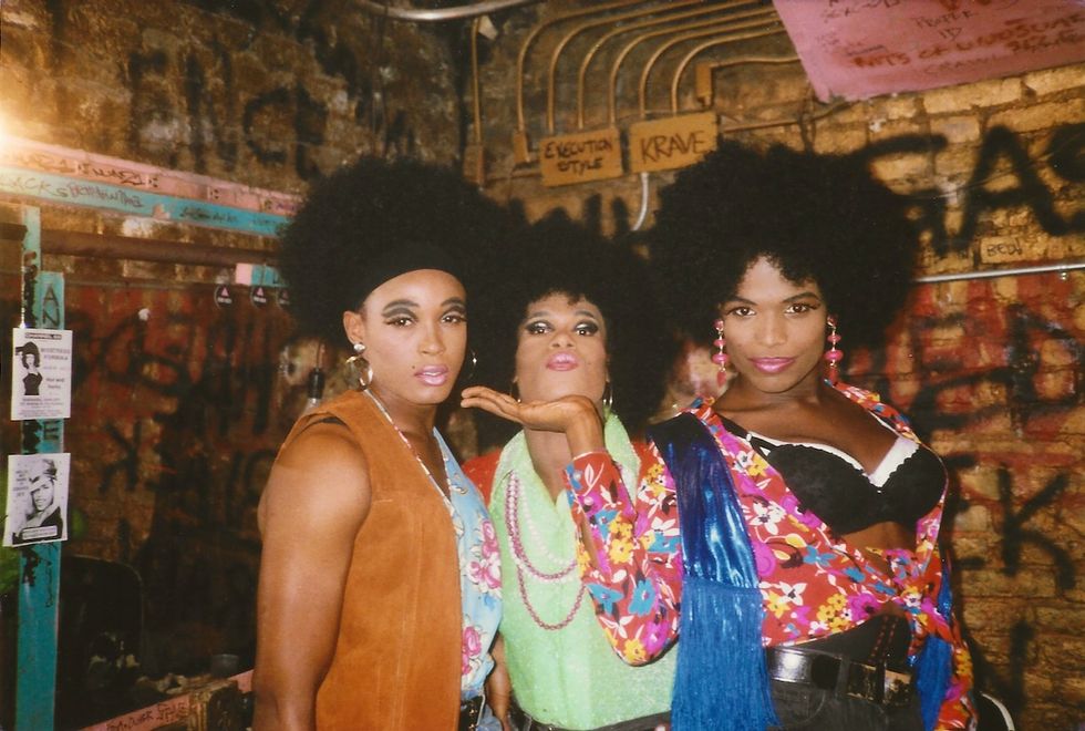 Afrodite, London Broil and Ebony Jet in Pyramid Club dressing room, 1992.