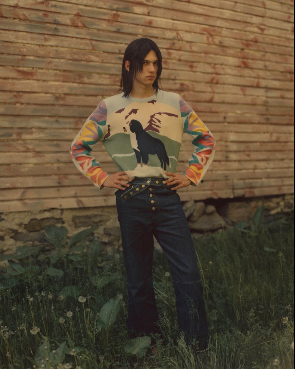 By applying drawings from generations past onto jumpers and incorporating his twice great grandmother's cherished clippings from gardening magazines into the collection's knitwear, Millar is carrying his family's legacy forward through his strikingly sensitive practice. "Sometimes I worry about my work being too personal," he admits. "But then I remember that that's the point of being creative, bringing a part of your experience to the table."