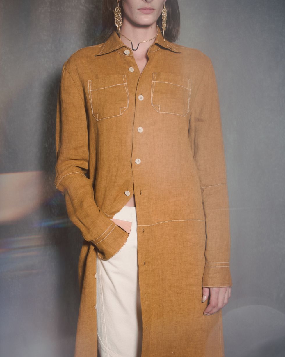 "There's not a singular ego behind this collection," Linder says explaining that each garment had to meet the approval of his design team. "I would share an idea with the team and ask them if they would wear and they would say no." As a result, Linder has shed his tendency to focus on a single point of reference — fall 2018, for example, fixated on Artemis, the mythological Greek goddess of the hunt. This season's light-weight separates in crayon colors and earthen hues are rooted in adaptability, making them easy to mold to one's personal style.
