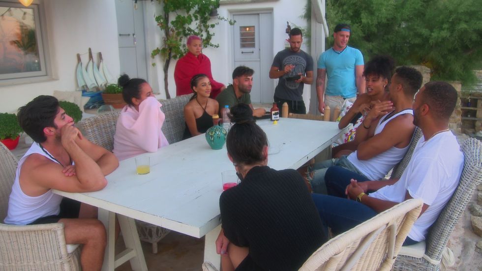 Now everyone is sitting around the table by the pool. Brent does a Brent: "So who else in this house has had sex apart from me and Sara?" he asks. Nice humble brag. Aristotle lightens the mood by saying he's jerked off in the house. Everyone enthusiastically laughs, like it is the funniest joke they've ever heard.