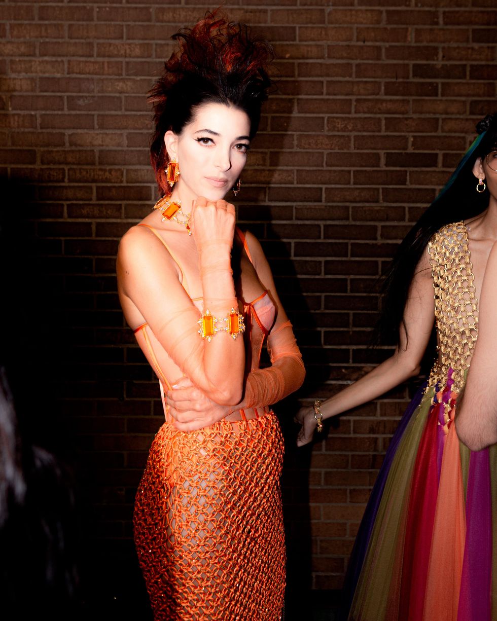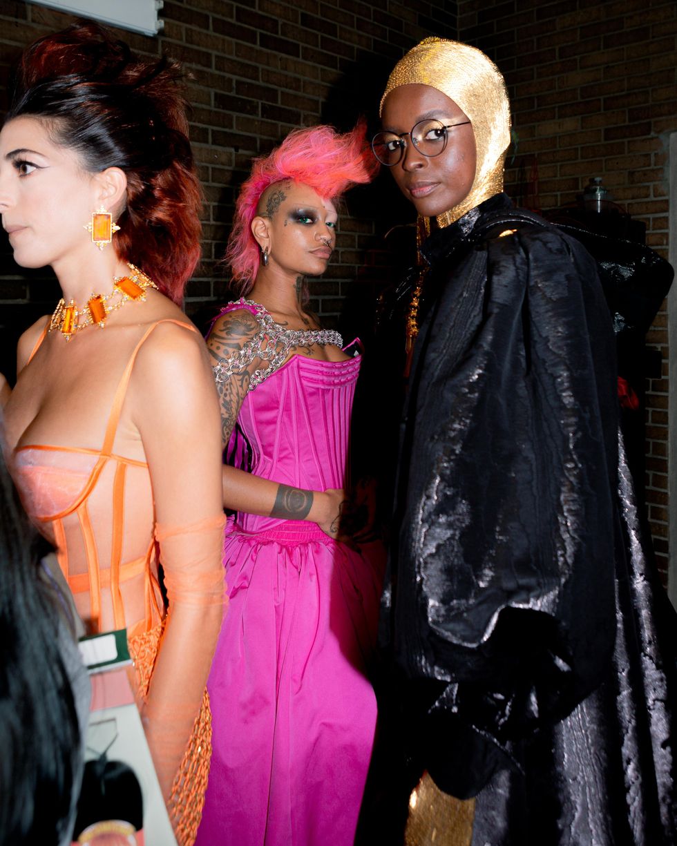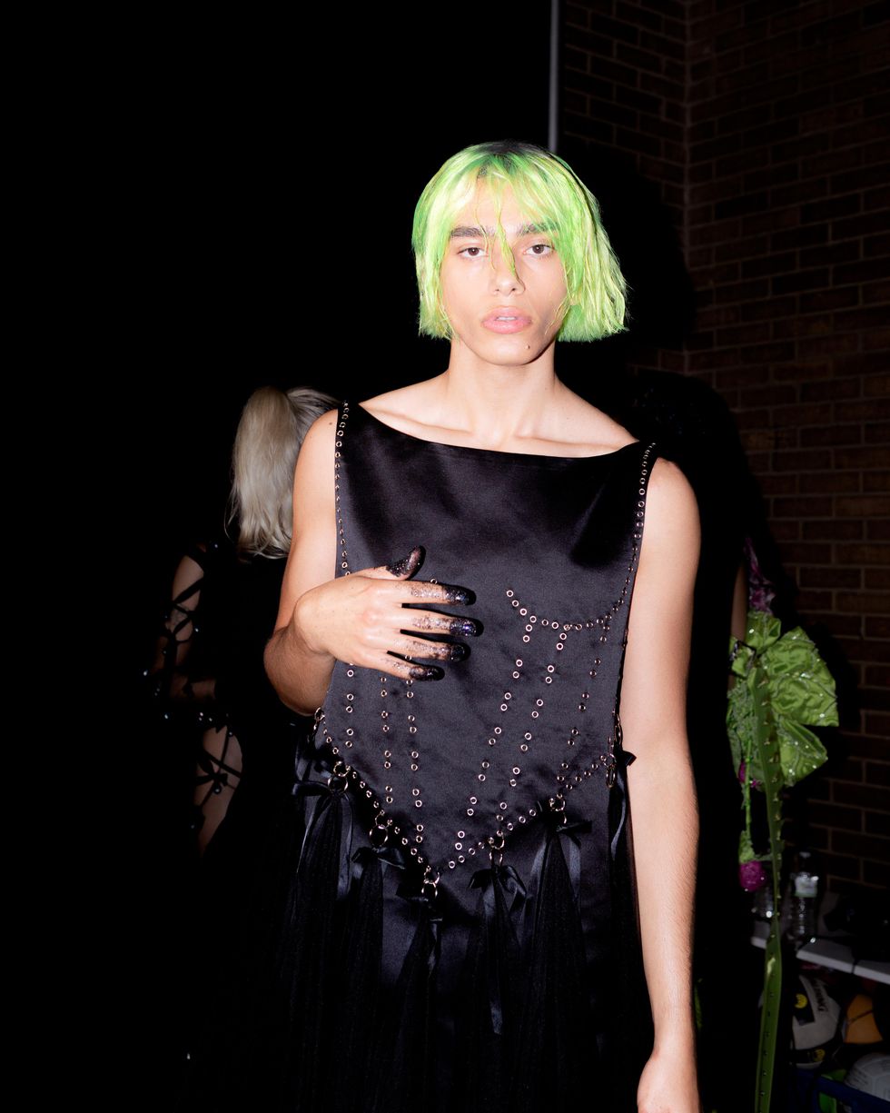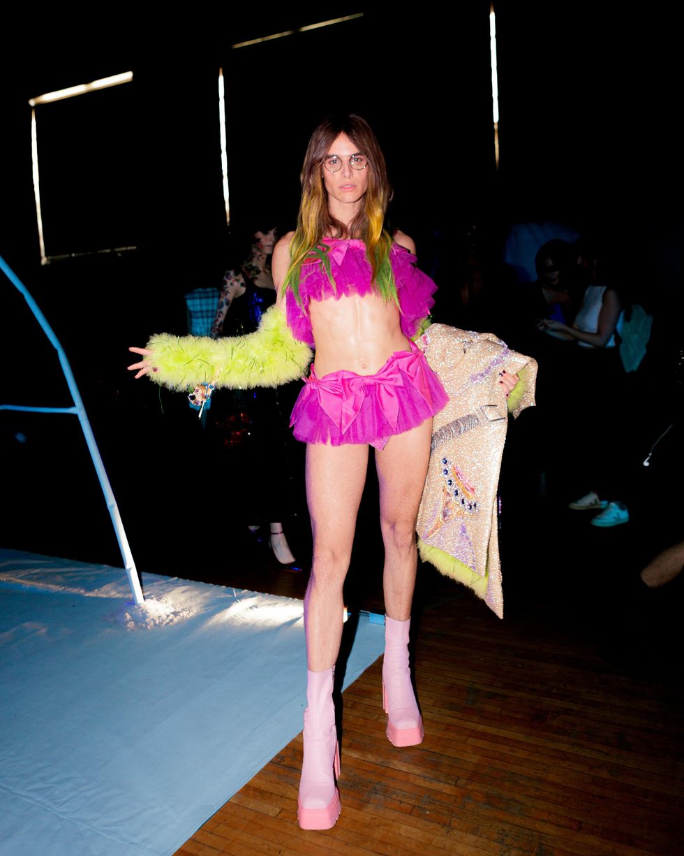 Just three blocks from Spring Studios, an alleyway in Chinatown was boarded off for what was probably the freshest show of NYFW. Amazon’s Making the Cut winner Yannik Zamboni showed off his Spring 2023 collection for Maison Blanche to the edgiest kids in the scene with blaring techno music. The show opened with rave-regular and newly signed Jeffries’ Jonah Almost, and incorporated a newness that all of New York needed to see. Memphy, also dressed in the brand, DJ’d the show front and center. The clothes were the perfect all-white-if-white-was-allowed-at-Berghain strappy uniform that fans of Zamboni have come to love from the designer. After the show, the afterparty took place at trendy dive bar Berlin-Under-A in alphabet city. The likes of Goth Jafar DJ’d, Meg Superstar Princess hosted and Jack Powers performed. All the known nightlife kids were in attendance, and the evening was the final piece to the NYFW puzzle that reinforced the notion that it's not the rich people in tall castles that create the fashion of New York, but rather the nomadic cool kids, who on a nightly basis dress for the frontlines of clubland.