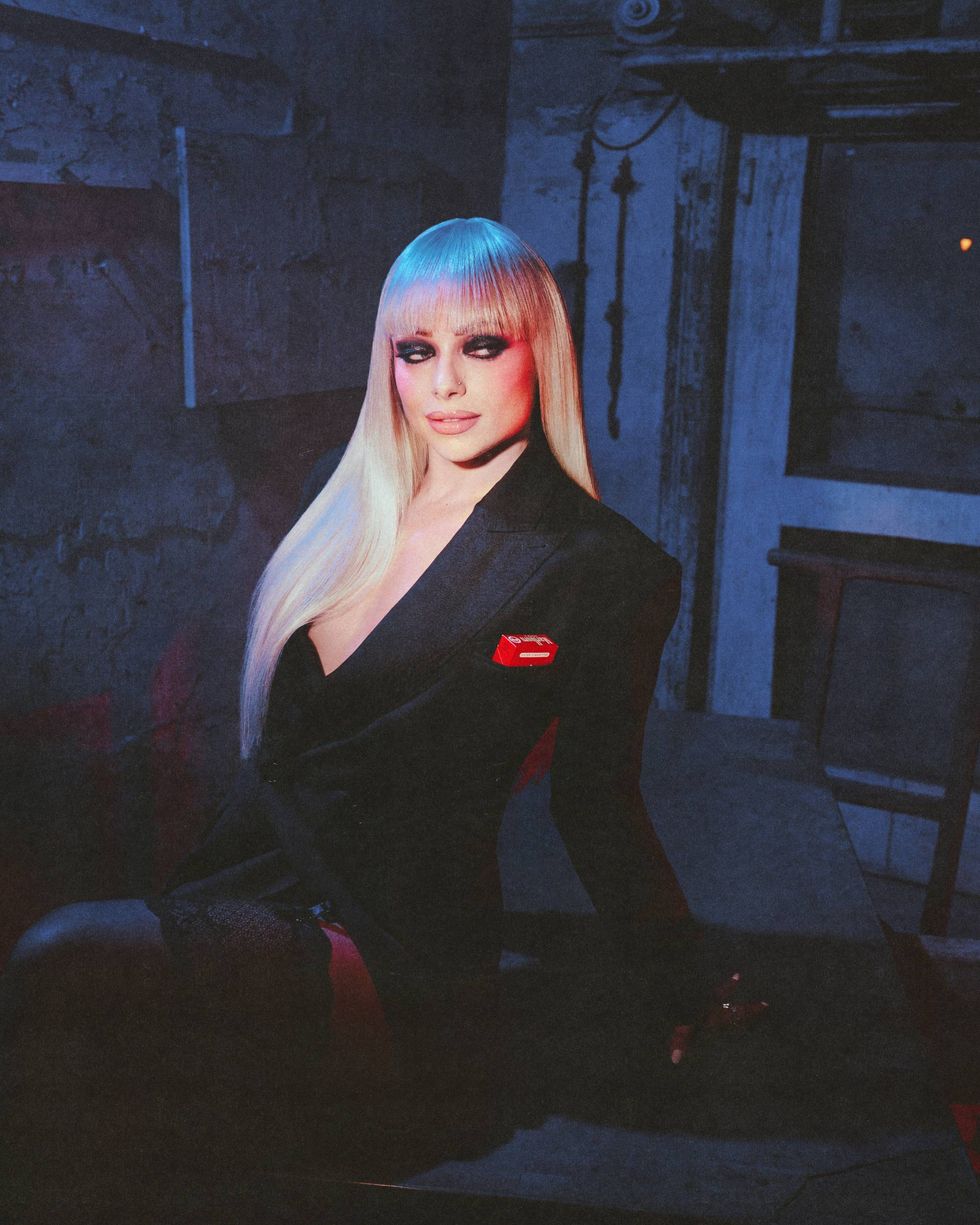 Blazer: BOYLONDON, Garter: Fleur Du Mal, Holdups: Calzedonia, Pumps: Gianvito Rossi, Rings: Nichko Rey