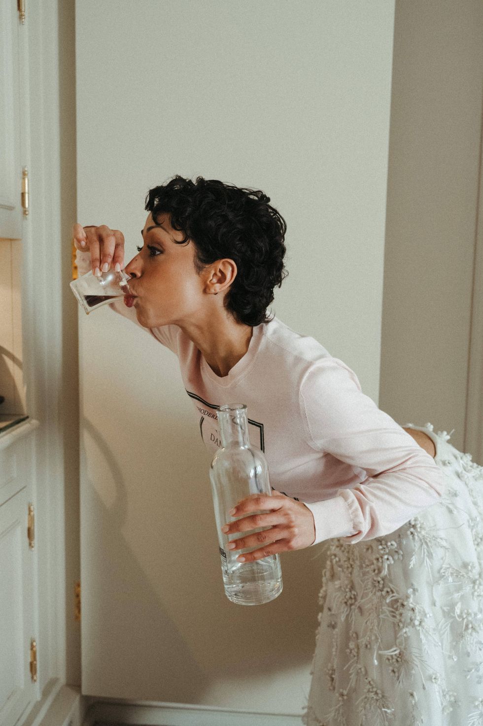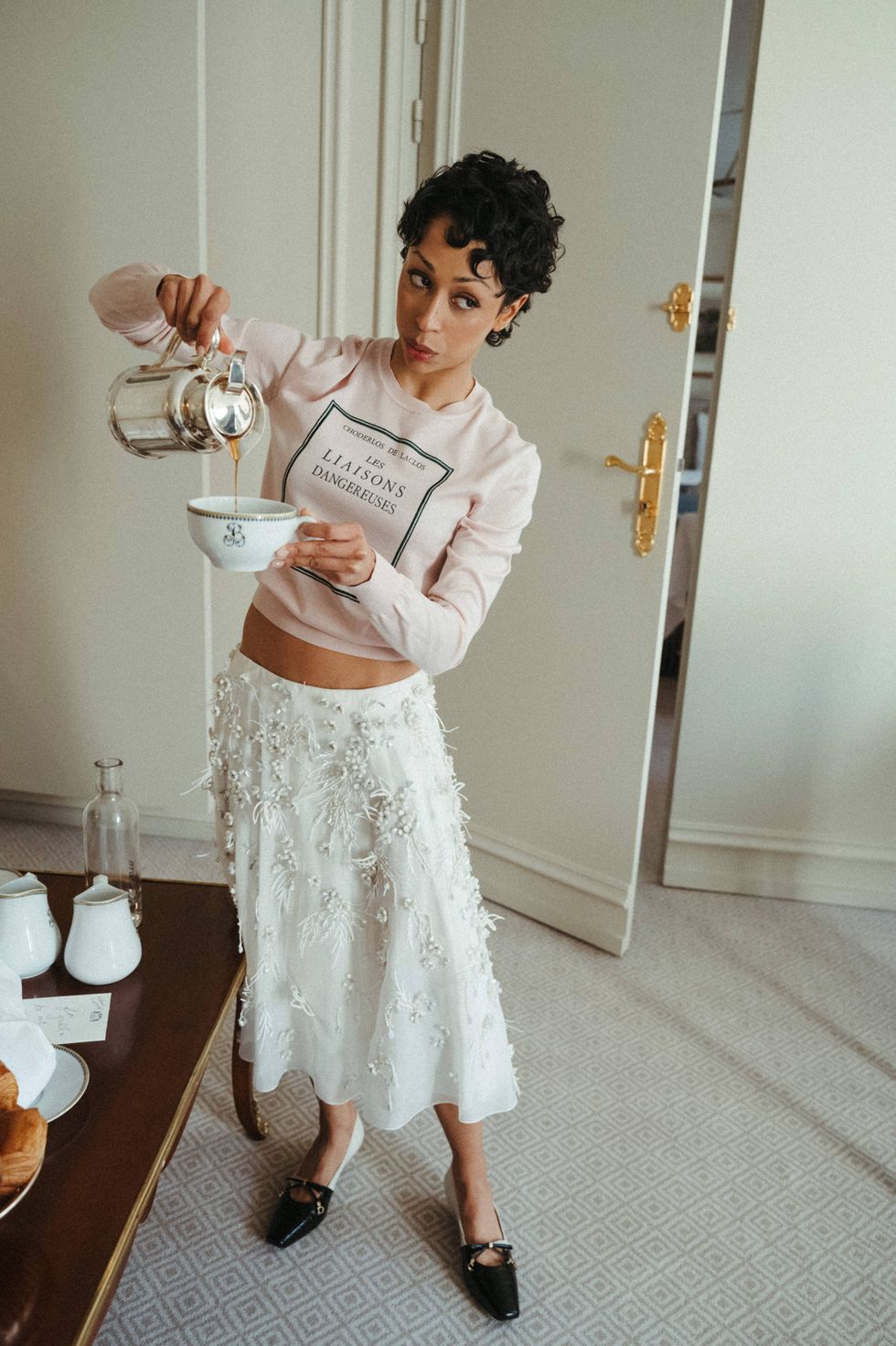 "God forbid I stain my Jonathan Anderson Dior with a droplet of espresso. Perfect ratio: For every shot of espresso, drink three shots of water. Or one glass of wine."