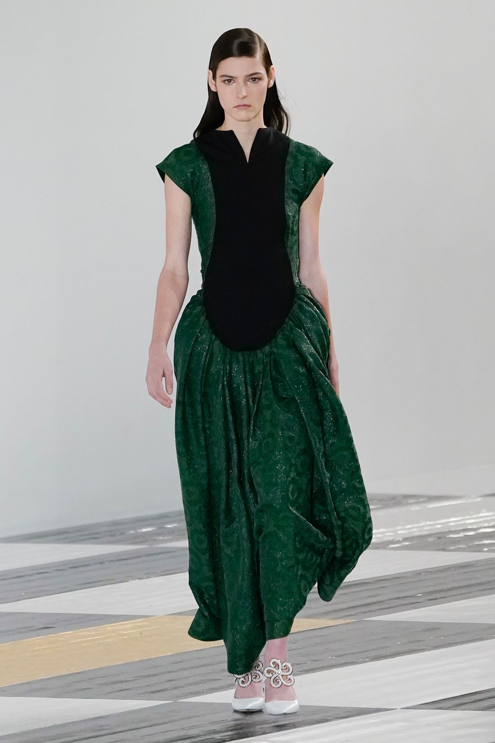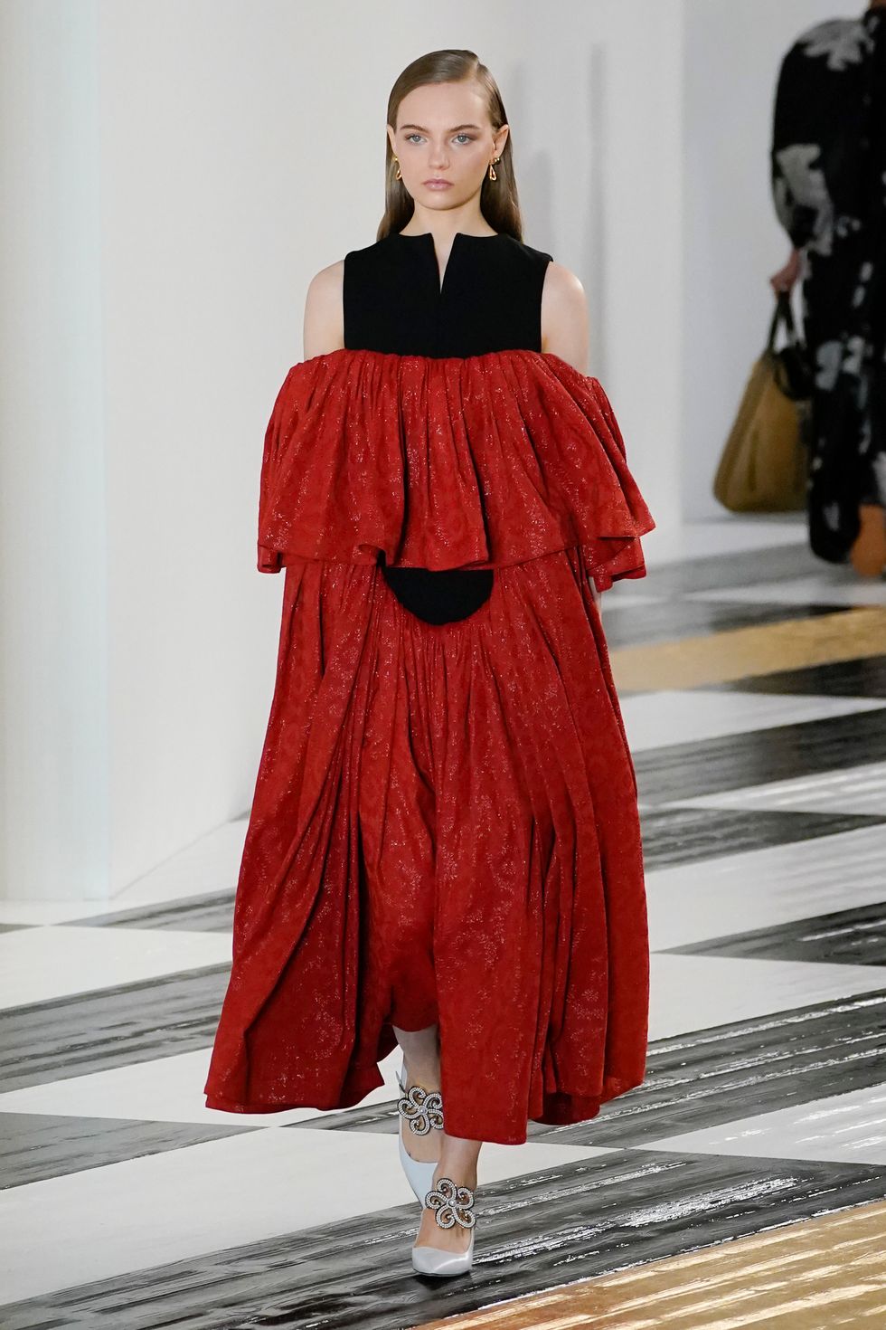 Thanks to feminine details like the tiered flute sleeves and romantic brocades, the unique quirks that make Loewe what it is are given an elevated, desirable edge that take it from kitschy to sophisticated. If JW Anderson is for the cool kids with an experimental approach, Loewe is for those who want to be basked in pure unabashed luxury.