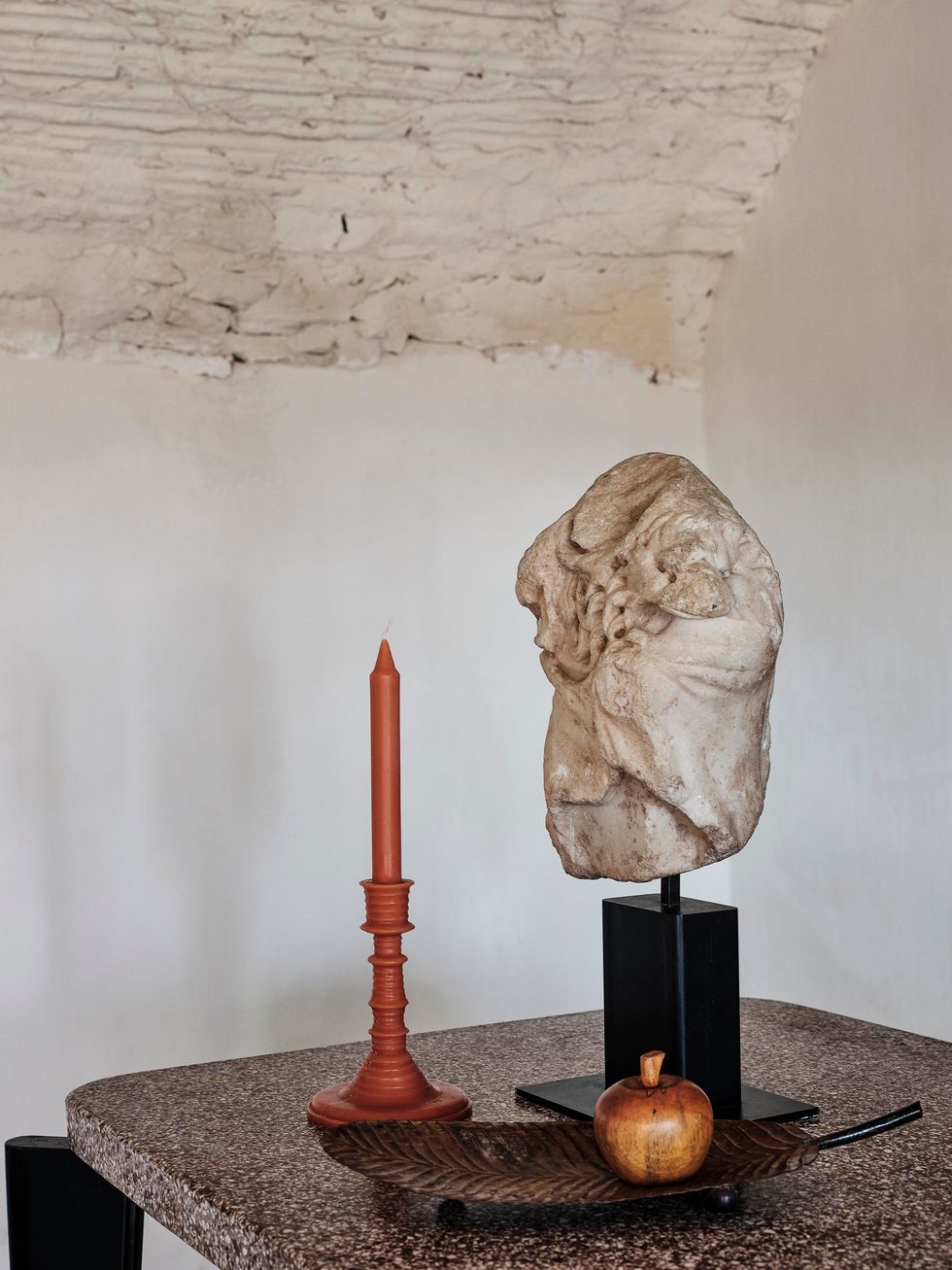 The Spanish packaging depicts each scent's plant on corresponding backgrounds, ranging from luscious green to robust red. Candles are held in terracotta pots inspired by Anderson's own 5th century BC Greek mug, while logo-embossed taller models rest on monochromatic holders. In true Loewe fashion, no detail was left spared.