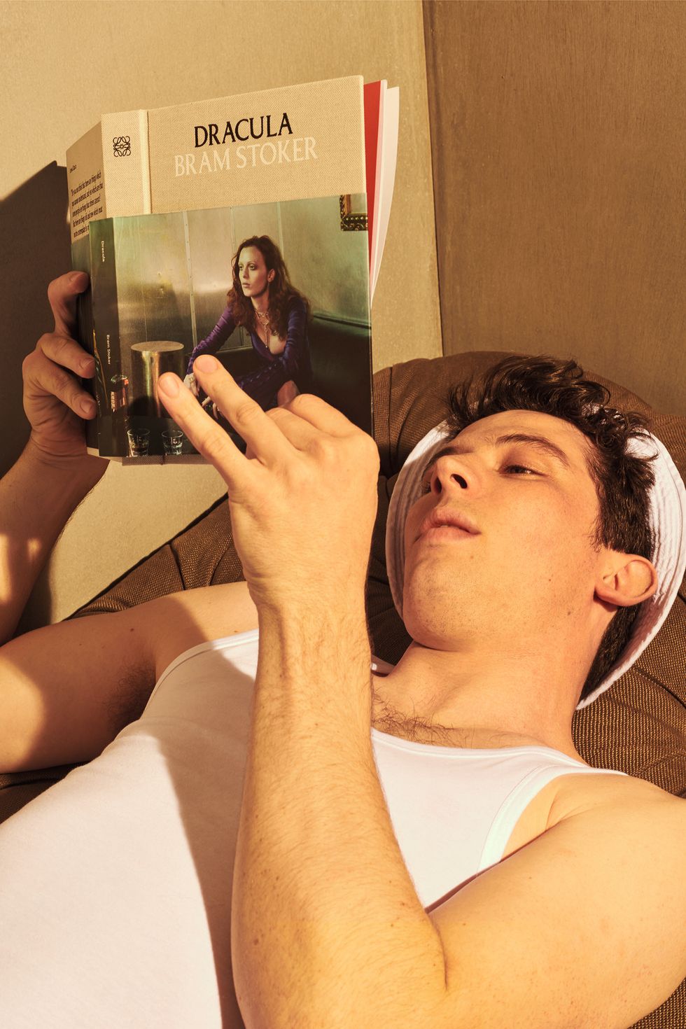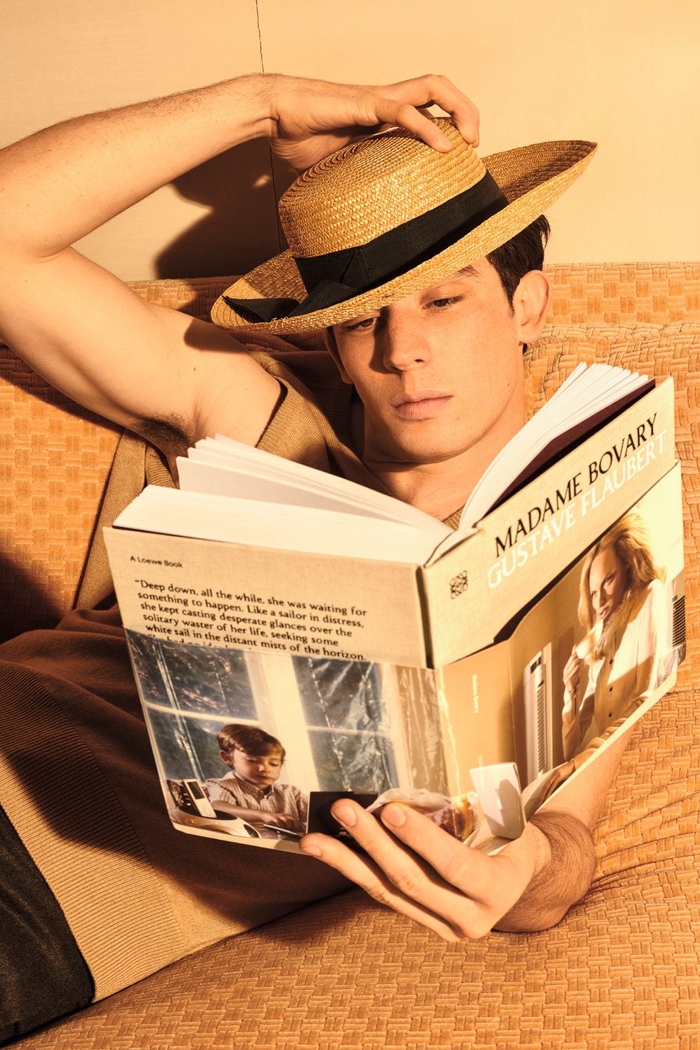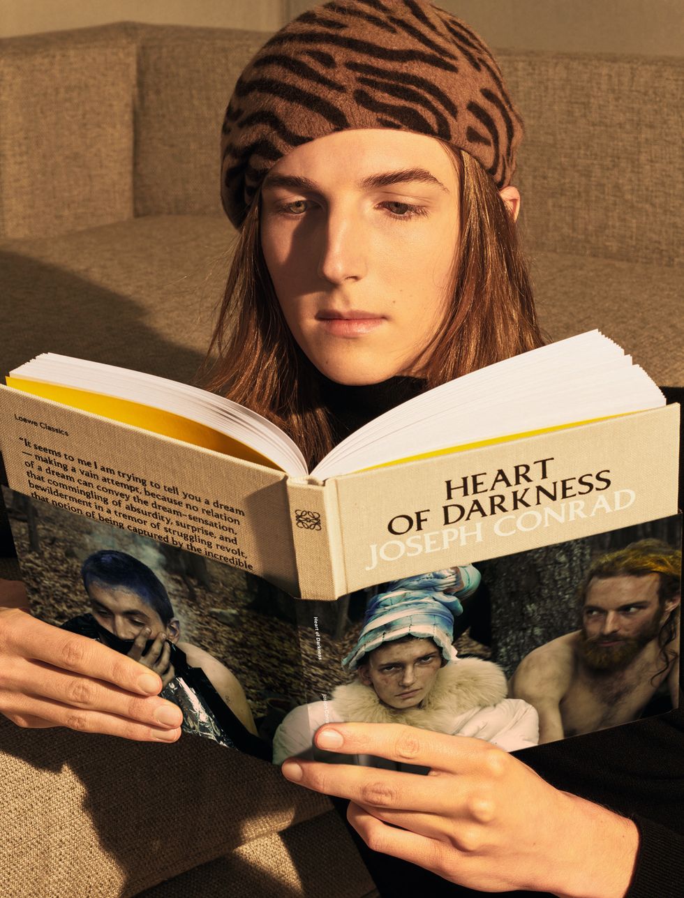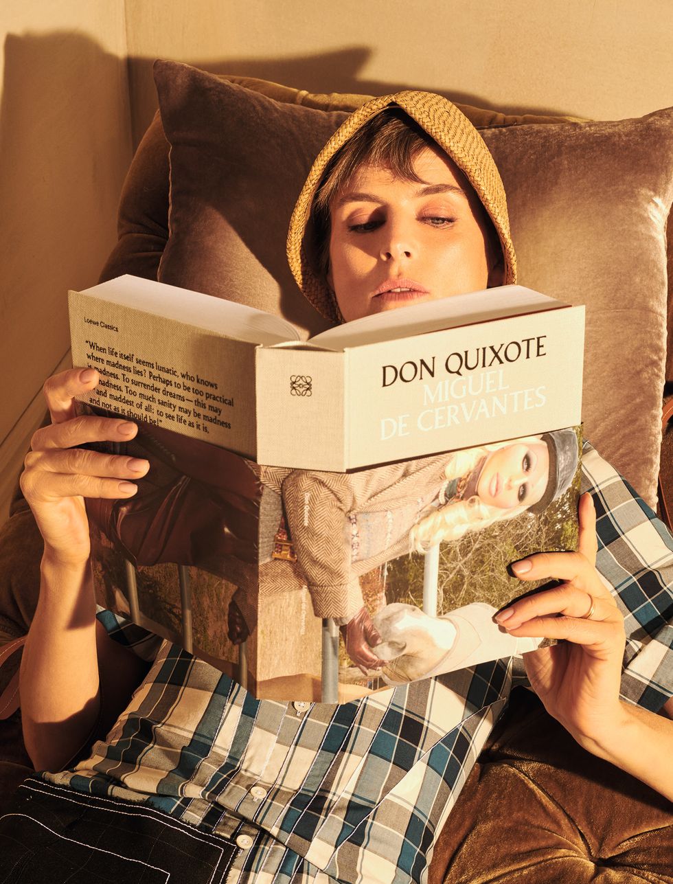 Shortly after the show, Loewe released select campaign images featuring model Stella Tennant reading Miguel de Cervantes's farcical novel Don Quixote and God's Own Country (2017) actor Josh O'Connor reading Madam Bowery by Gustav Flaubert.