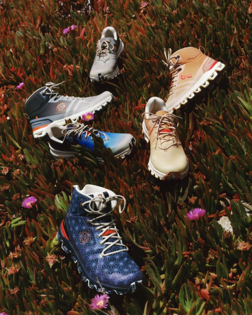 The capsule, which officially dropped today, consists of Loewe editions of On's signature Cloudventure and Cloudrock sneakers in five colors as well as six ready-to-wear pieces for women and seven for men, all of which combine On's performance elements with Loewe's attention to craft and detail.