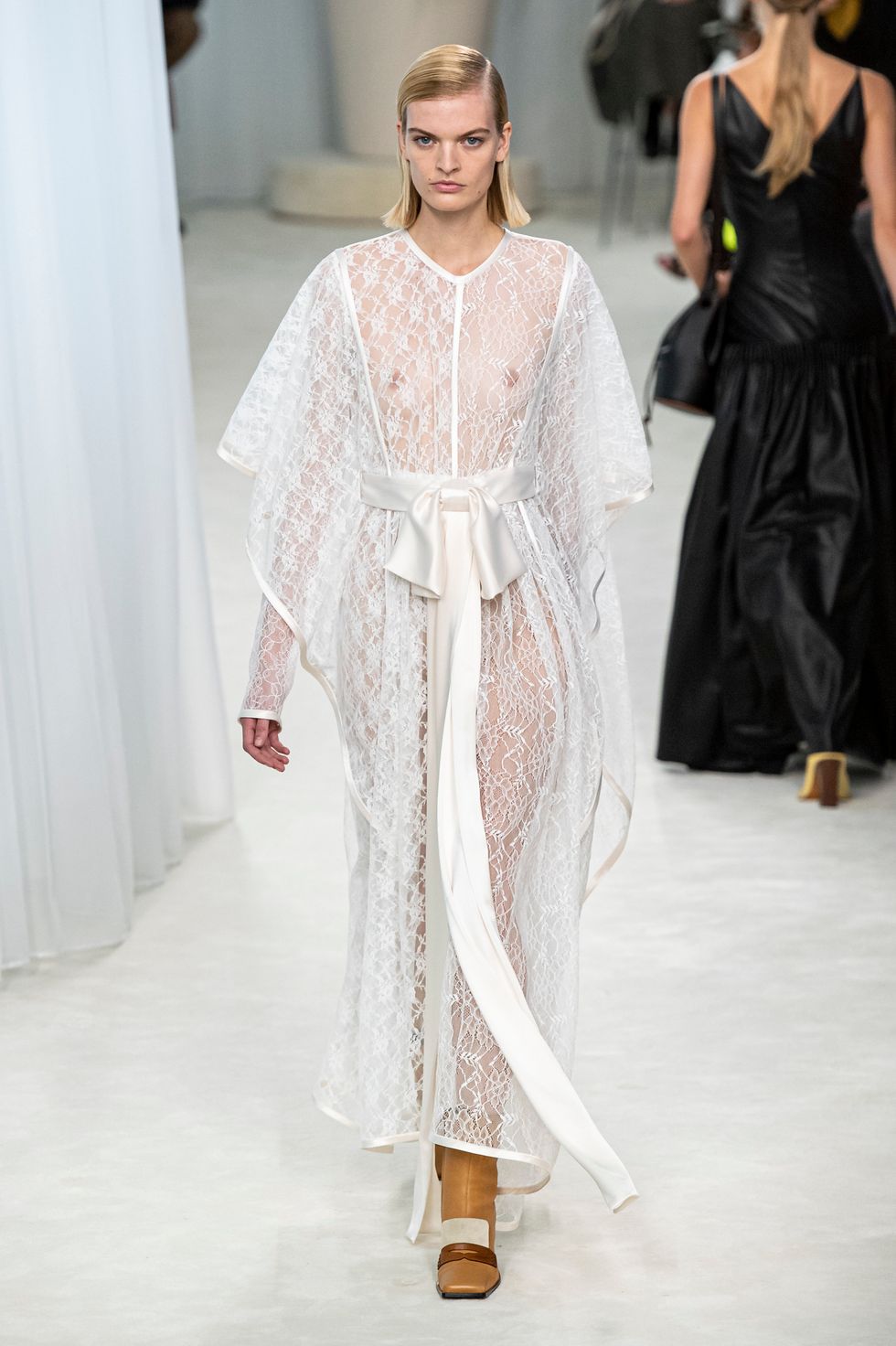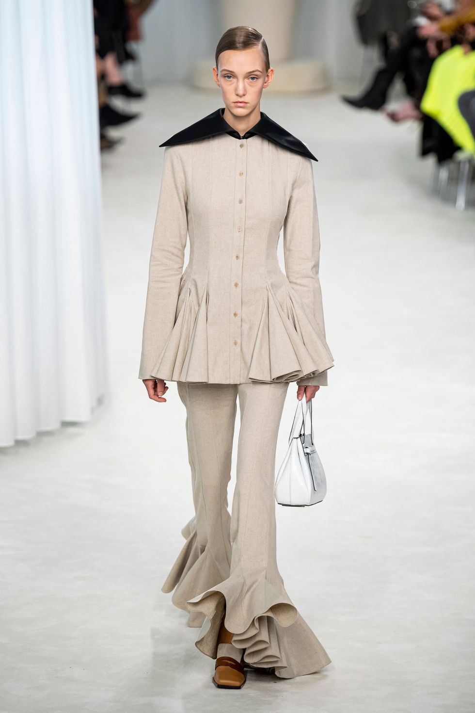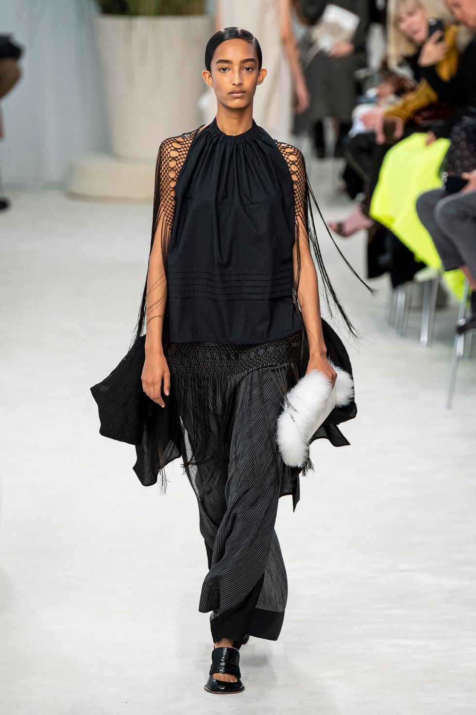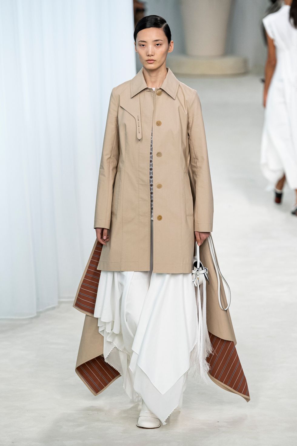 Since Jonathan Anderson took over the reins at Loewe, he's brought new life to the Spanish brand. Accessories and leather goods have really taken off under the British designer, but it's his ready-to-wear where his ideas truly shine. At Loewe, his conceptual design sensibility melds with a crafty, artisanal touch, an essential element of the 170+ year-old company's DNA. For Spring 2020, he incorporated an aristocratic approach to the clothes seen in the intricate lace frocks. Wide-hipped panniers recall the traditional court dresses of 17th century Spain, which nod to the brand's origins in Madrid. Here's everything else you need to know about the collection.