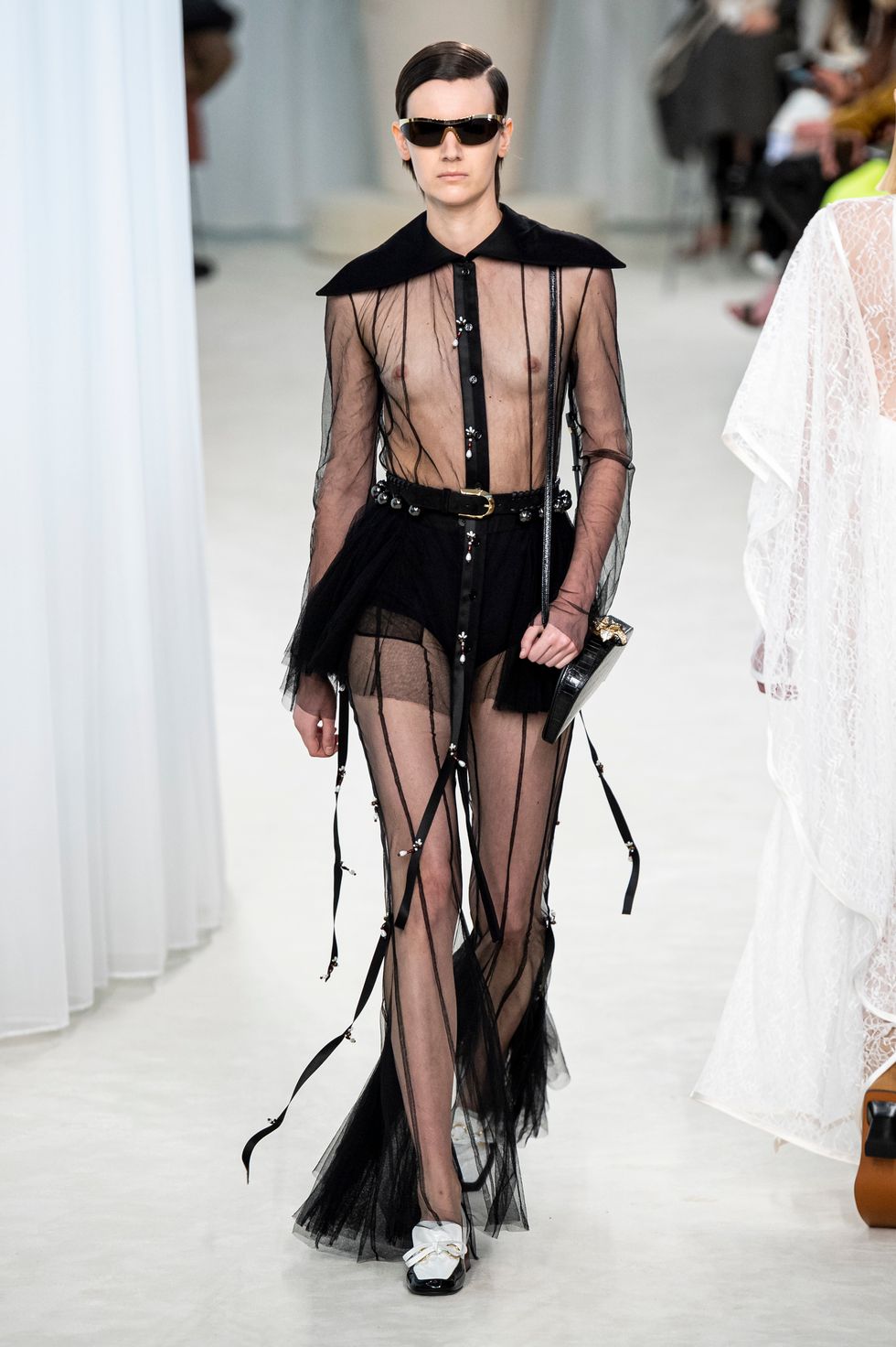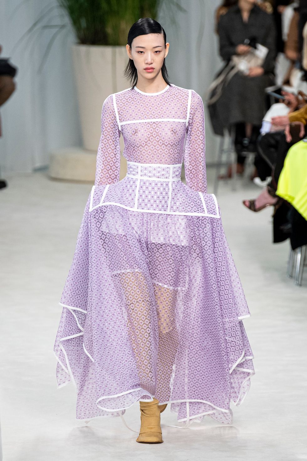 The standout pieces of the collection were arguably the sheer lace dresses that covered the entire body. Wide-hipped pannier versions in lavender and yellow lace also stole the show.