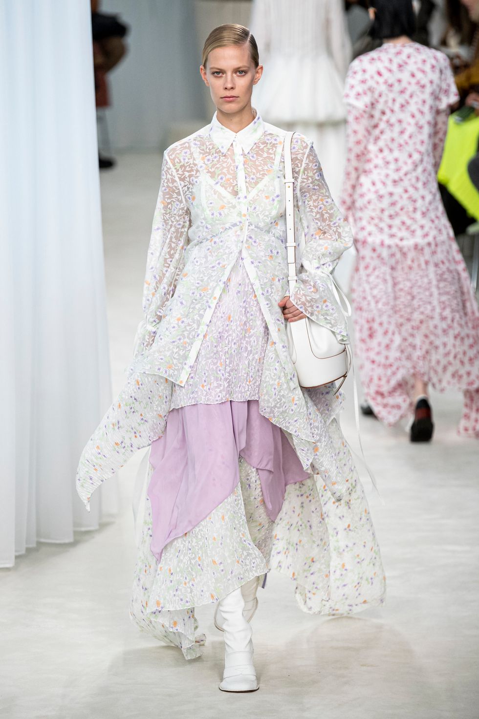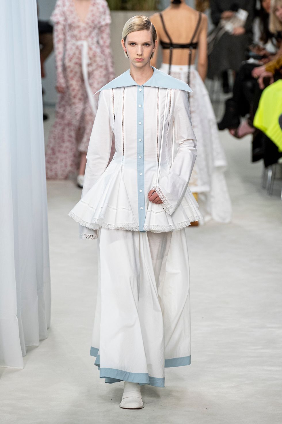 Lightweight dresses moved with the models thanks to their voluminous shapes and layered handkerchief hems that floated effortlessly on the runway.