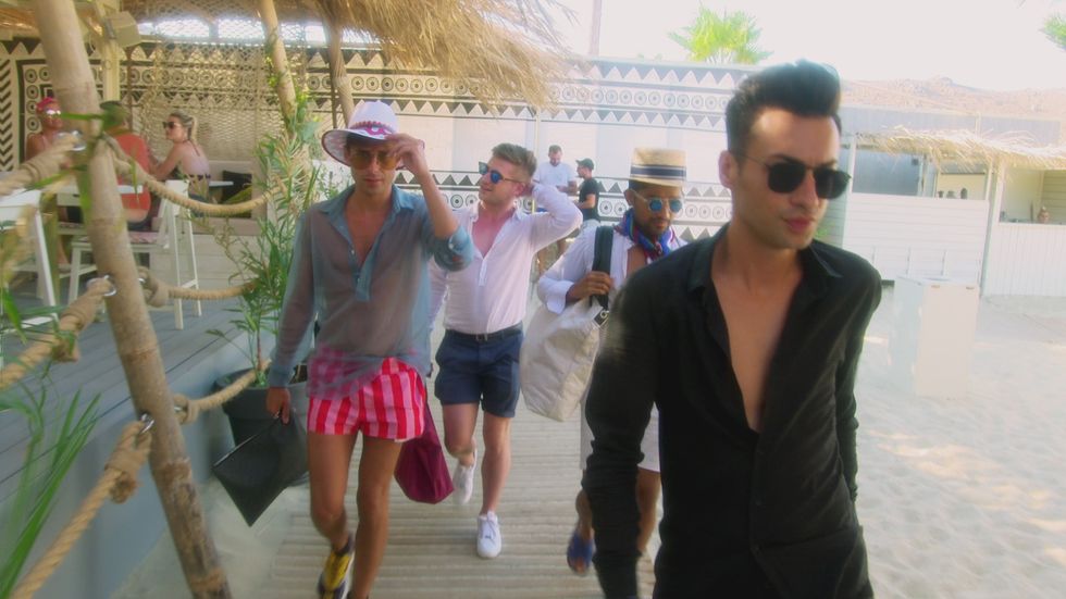 Enrique arrives. He has three friends with him, also in sunglasses. The boys gather around, shirtless. I can tell this is all we're going to see of Enrique. Why must we see the hosts work at all? It's so dull, and the producers are clearly aware of it by now.
